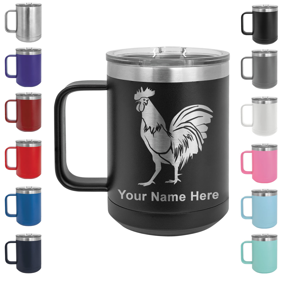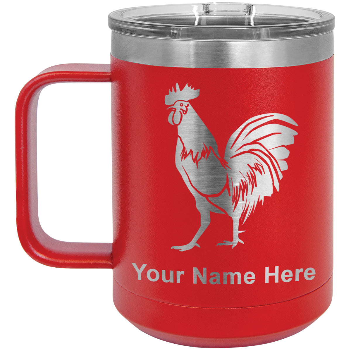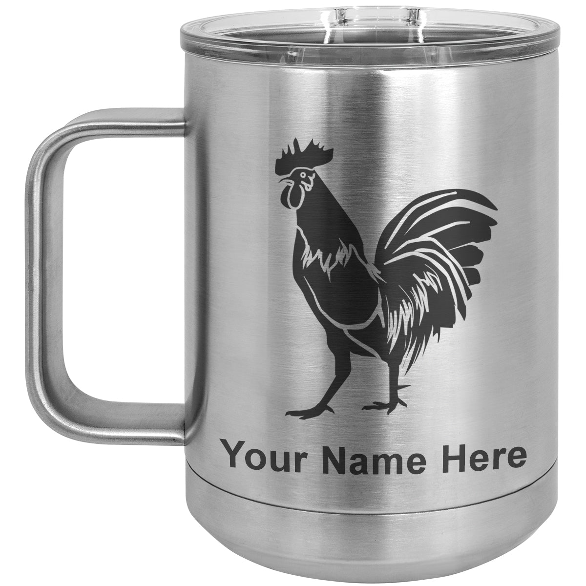 15oz Vacuum Insulated Coffee Mug, Rooster, Personalized Engraving Included