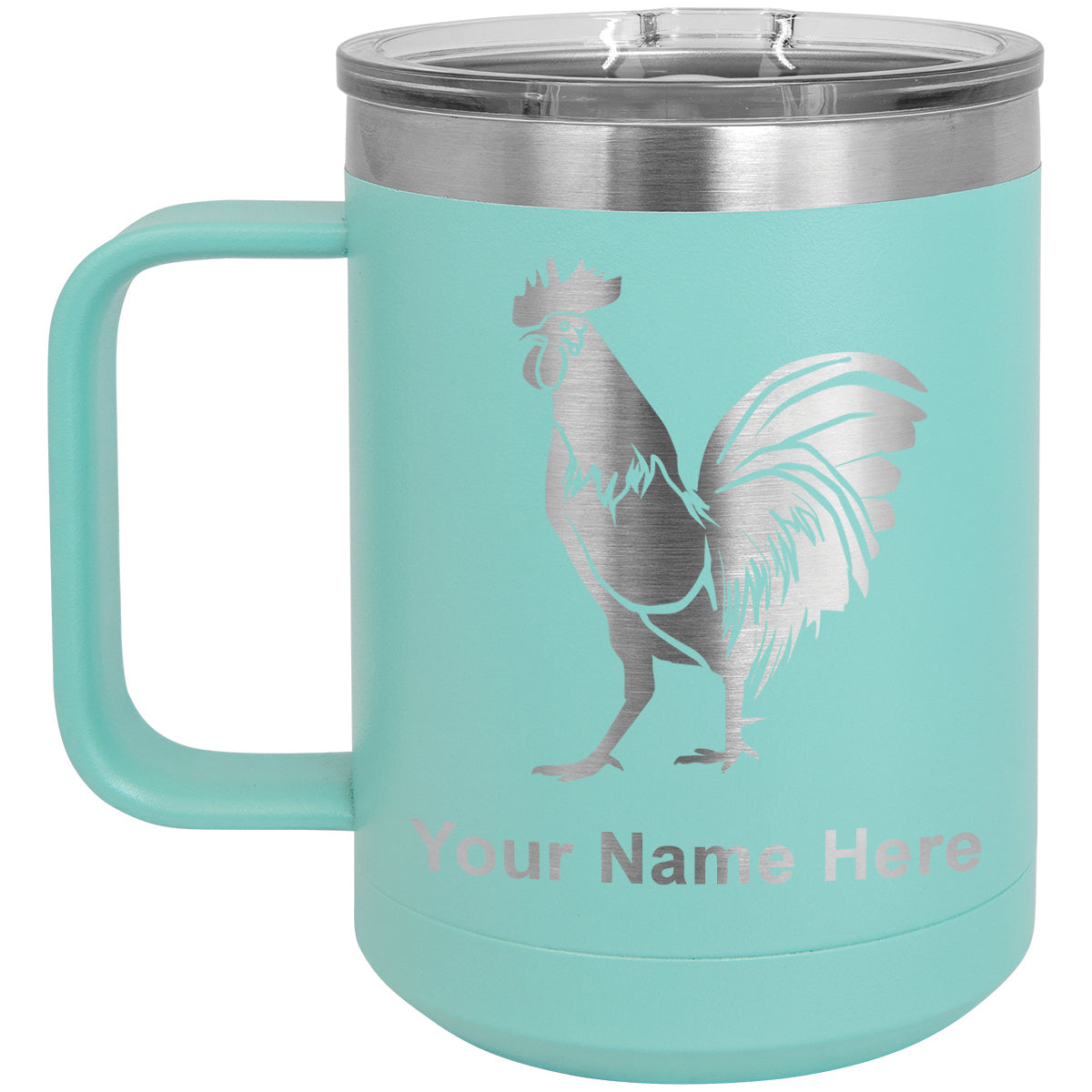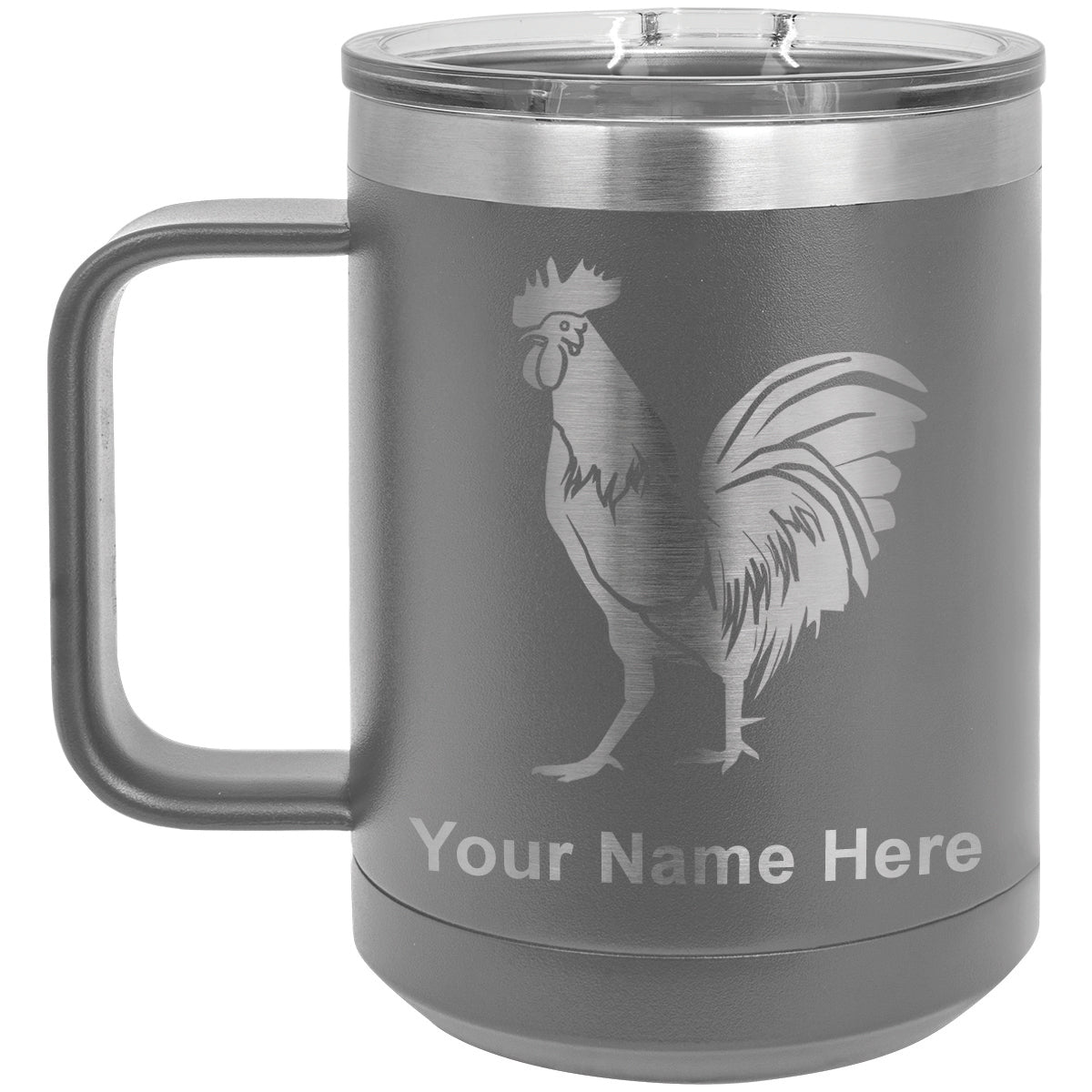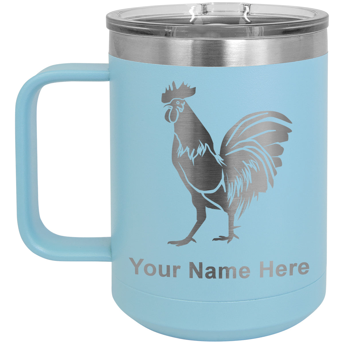 15oz Vacuum Insulated Coffee Mug, Rooster, Personalized Engraving Included
