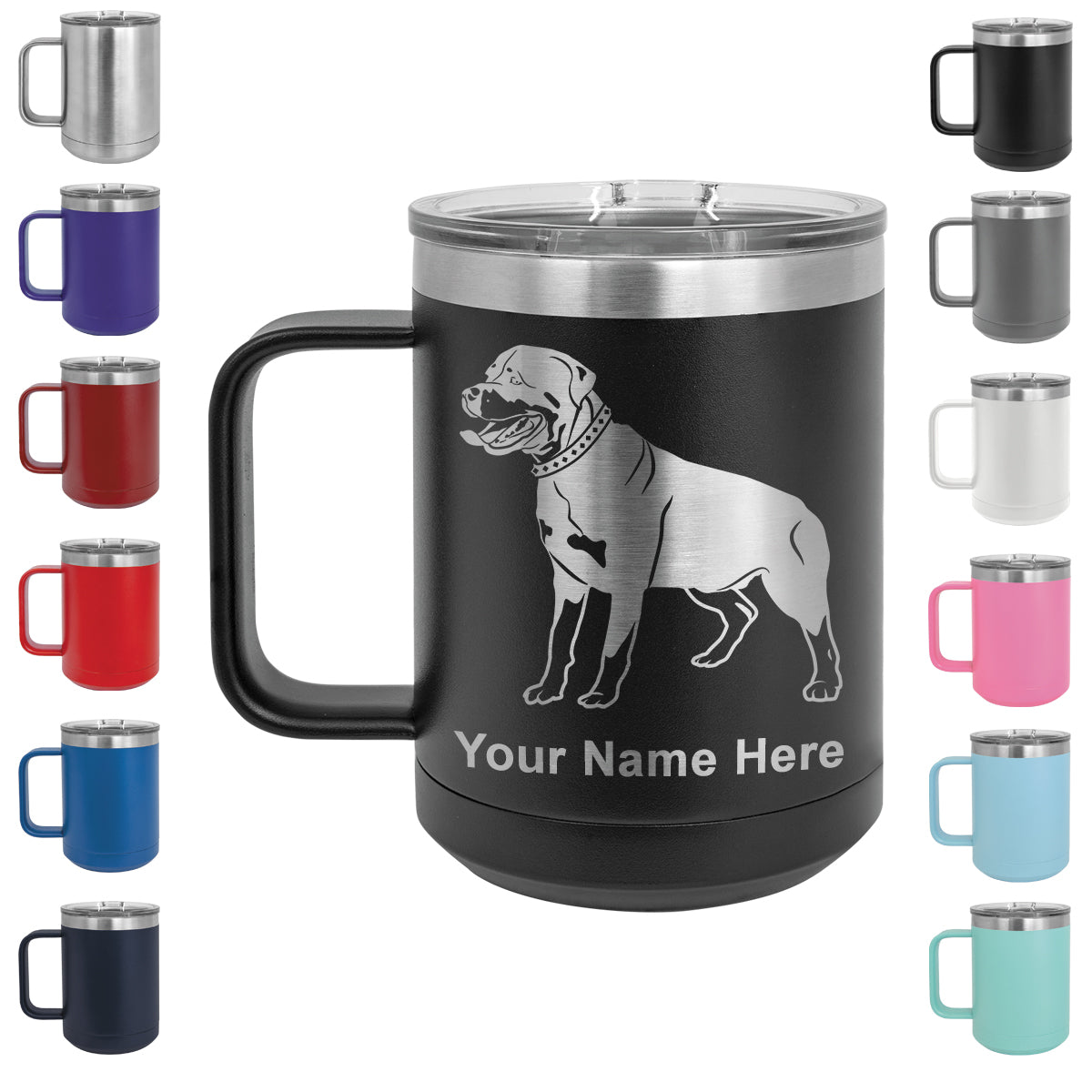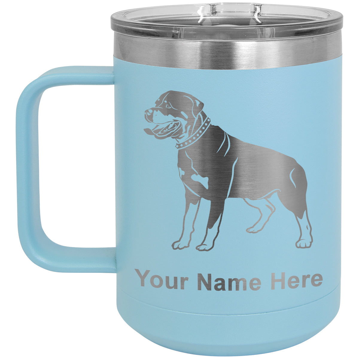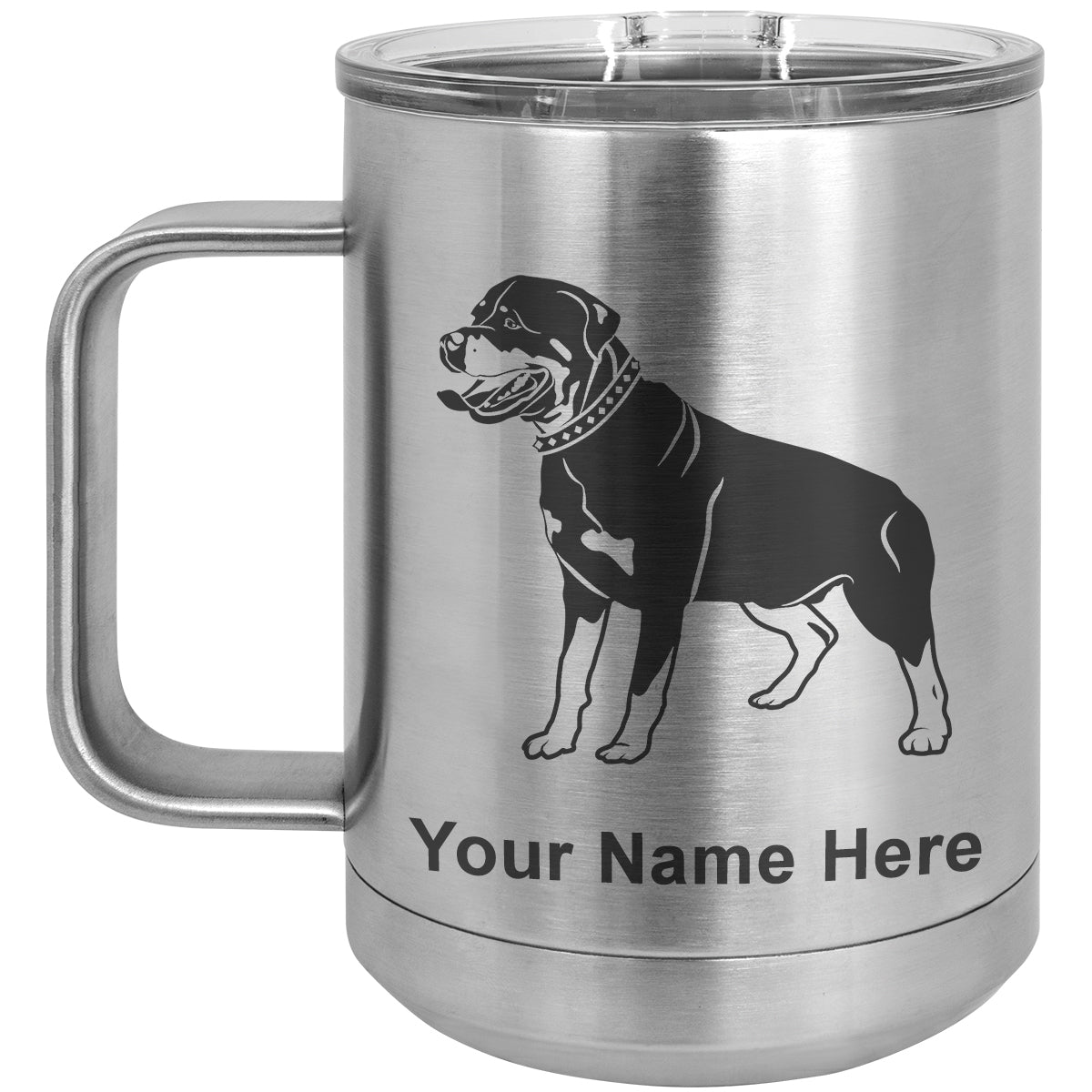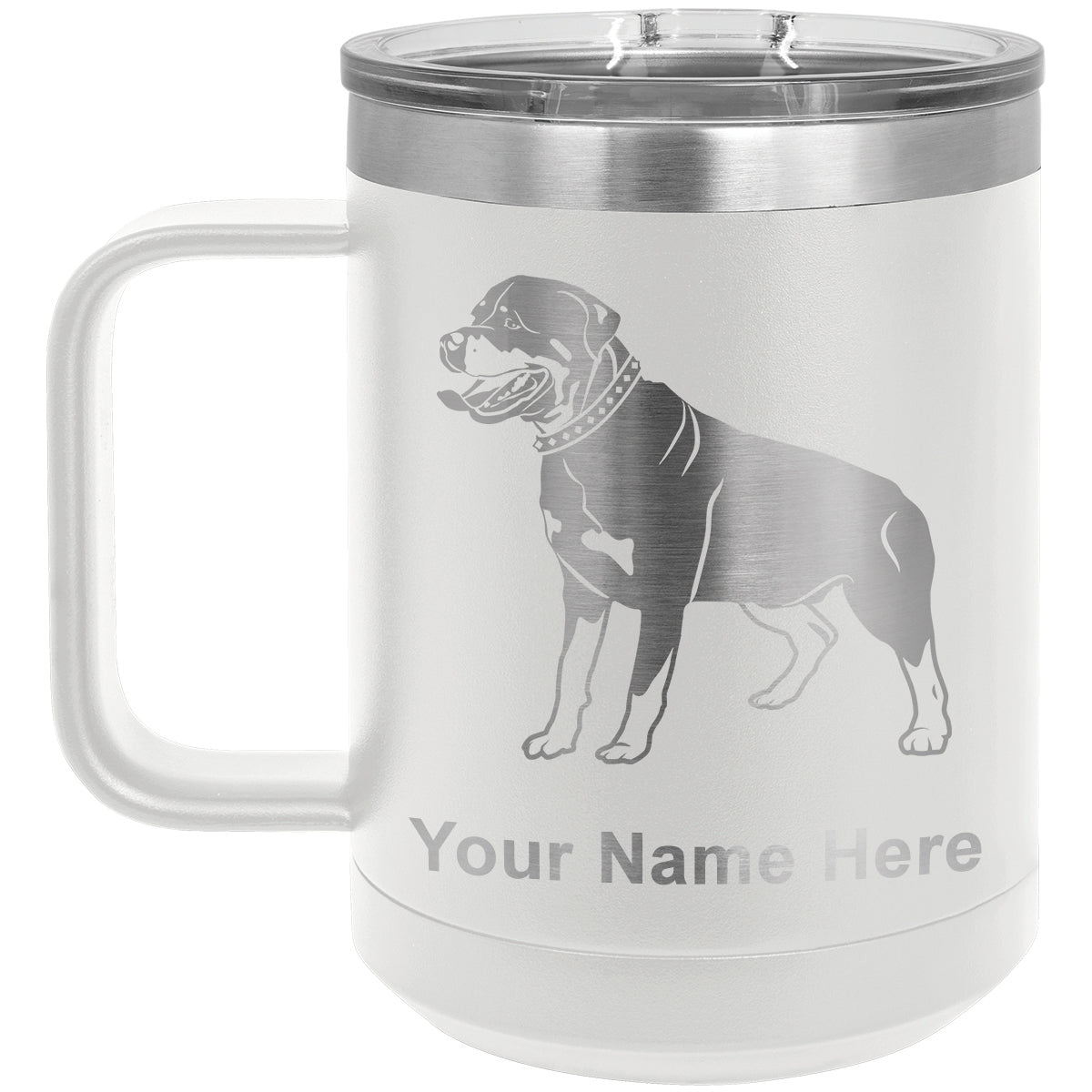 15oz Vacuum Insulated Coffee Mug, Rottweiler Dog, Personalized Engraving Included