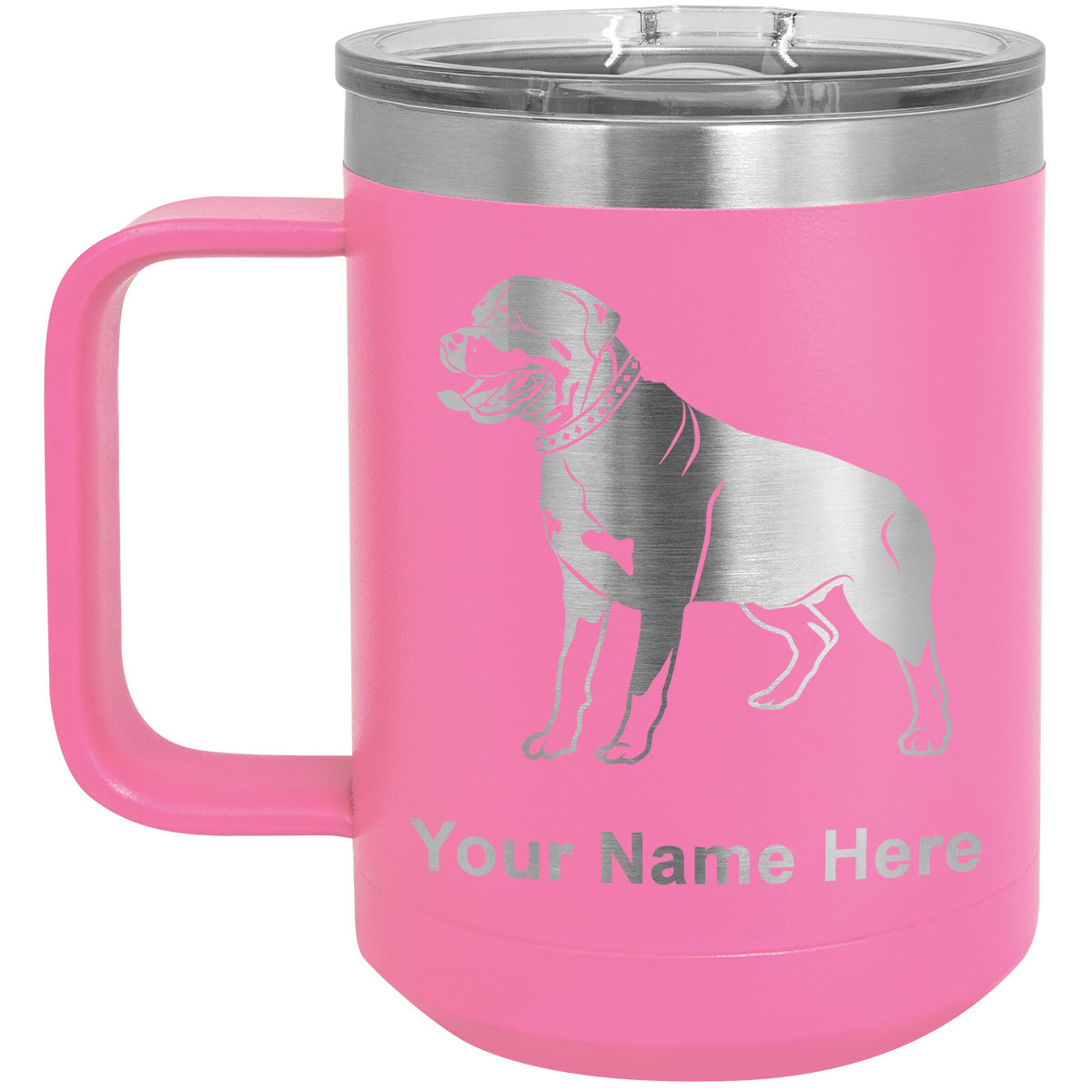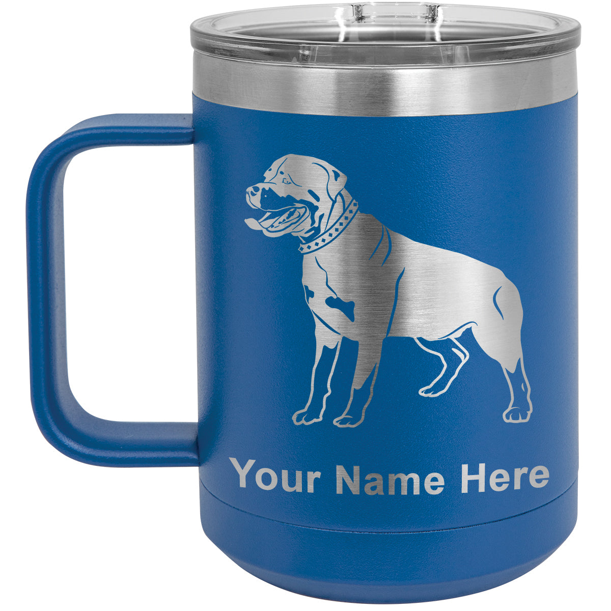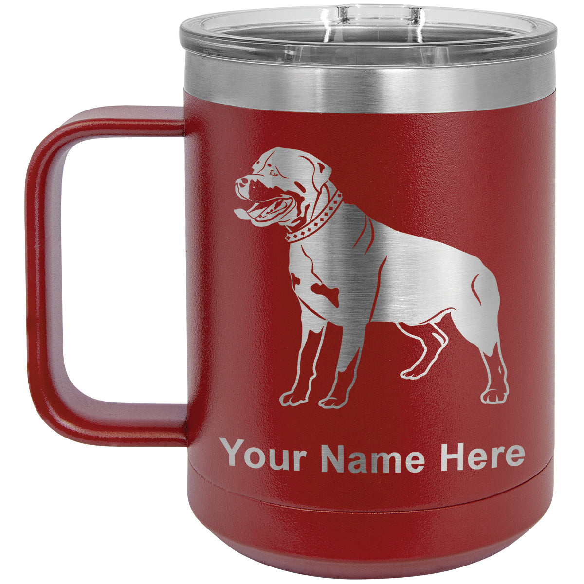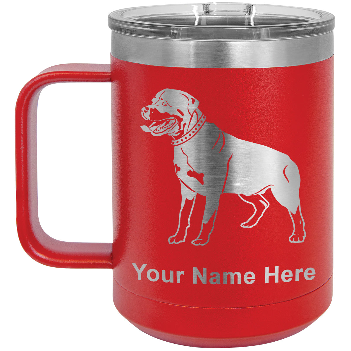 15oz Vacuum Insulated Coffee Mug, Rottweiler Dog, Personalized Engraving Included