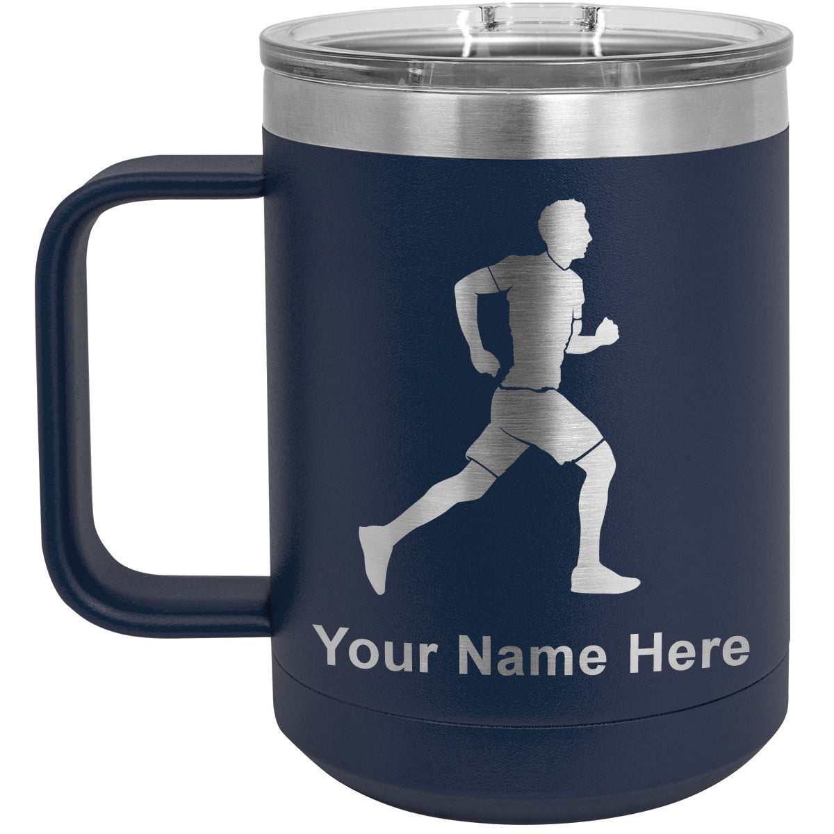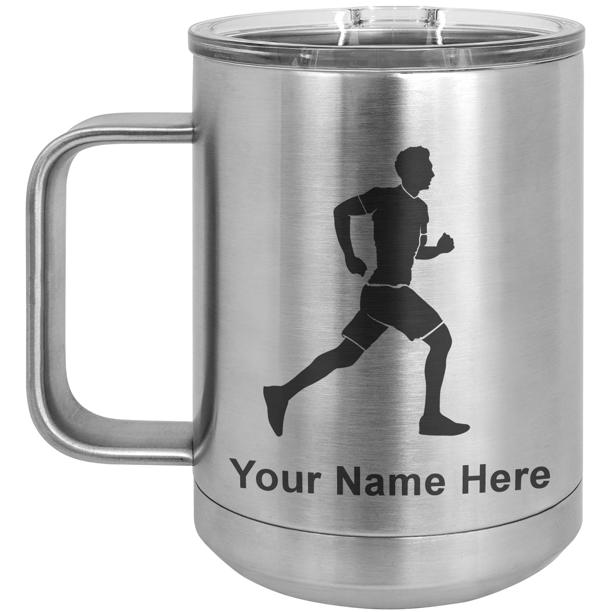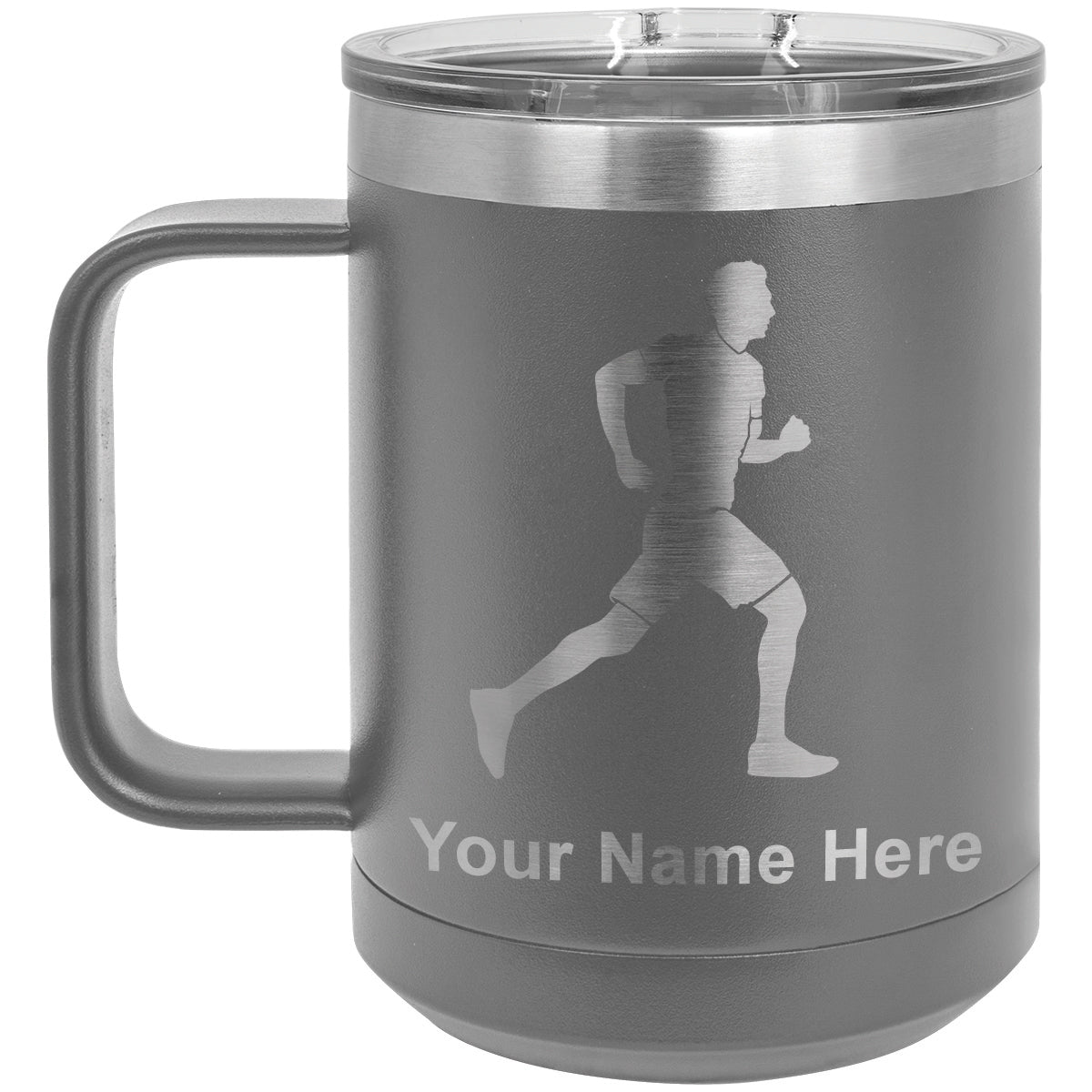 15oz Vacuum Insulated Coffee Mug, Running Man, Personalized Engraving Included