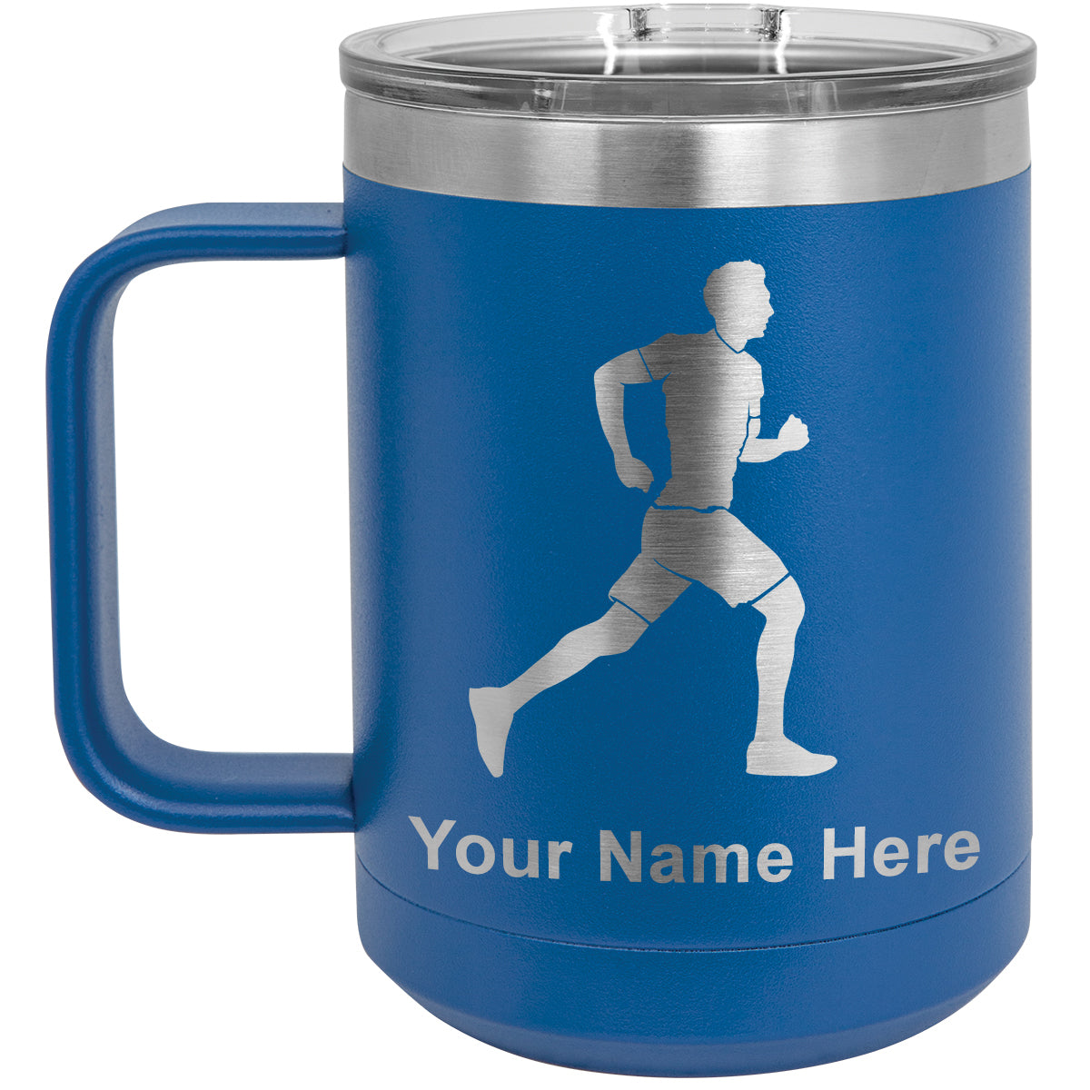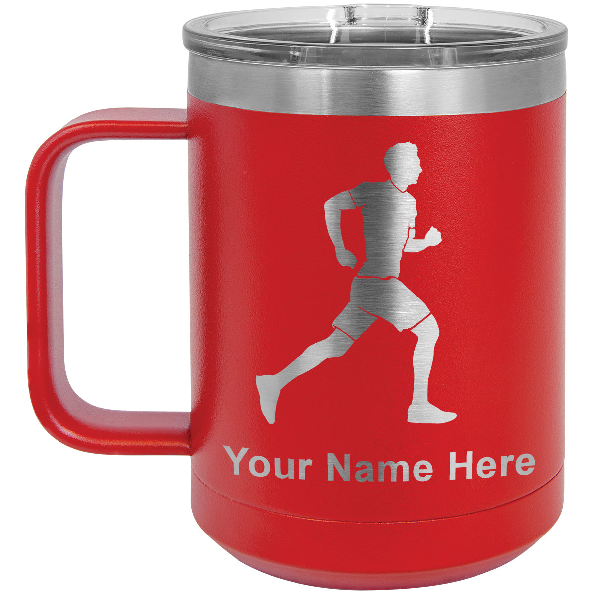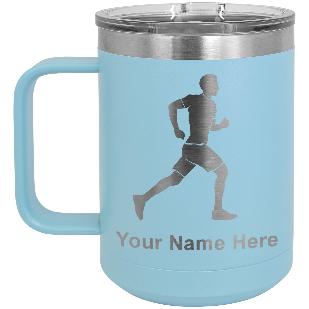15oz Vacuum Insulated Coffee Mug, Running Man, Personalized Engraving Included