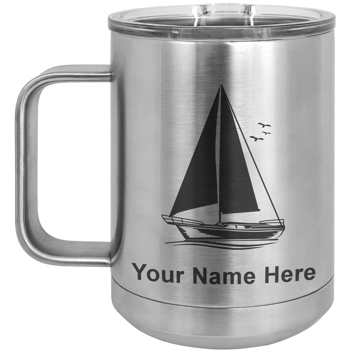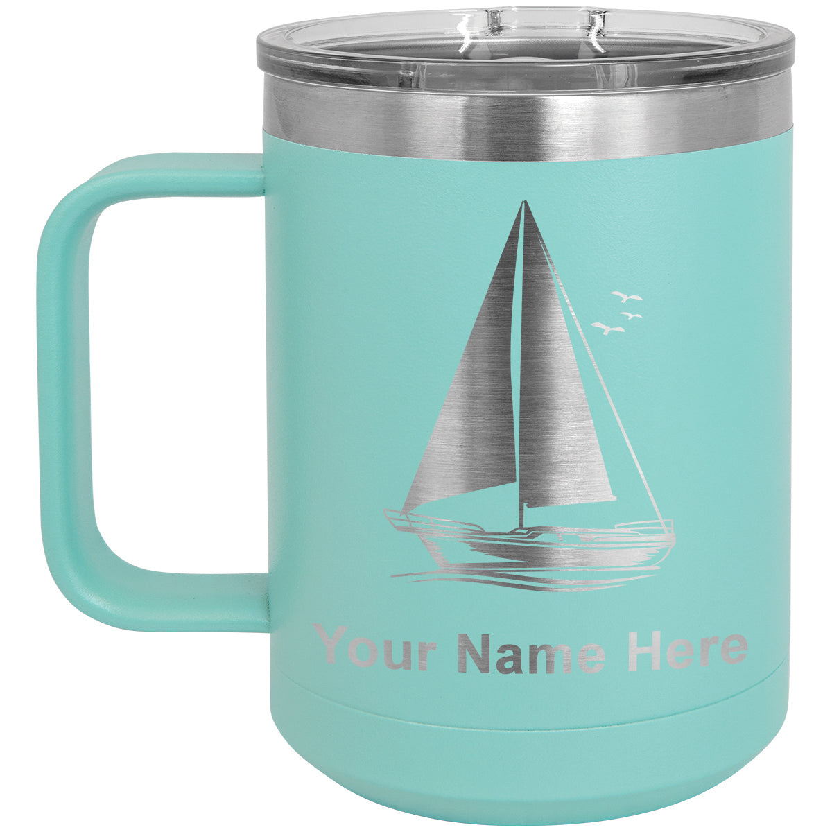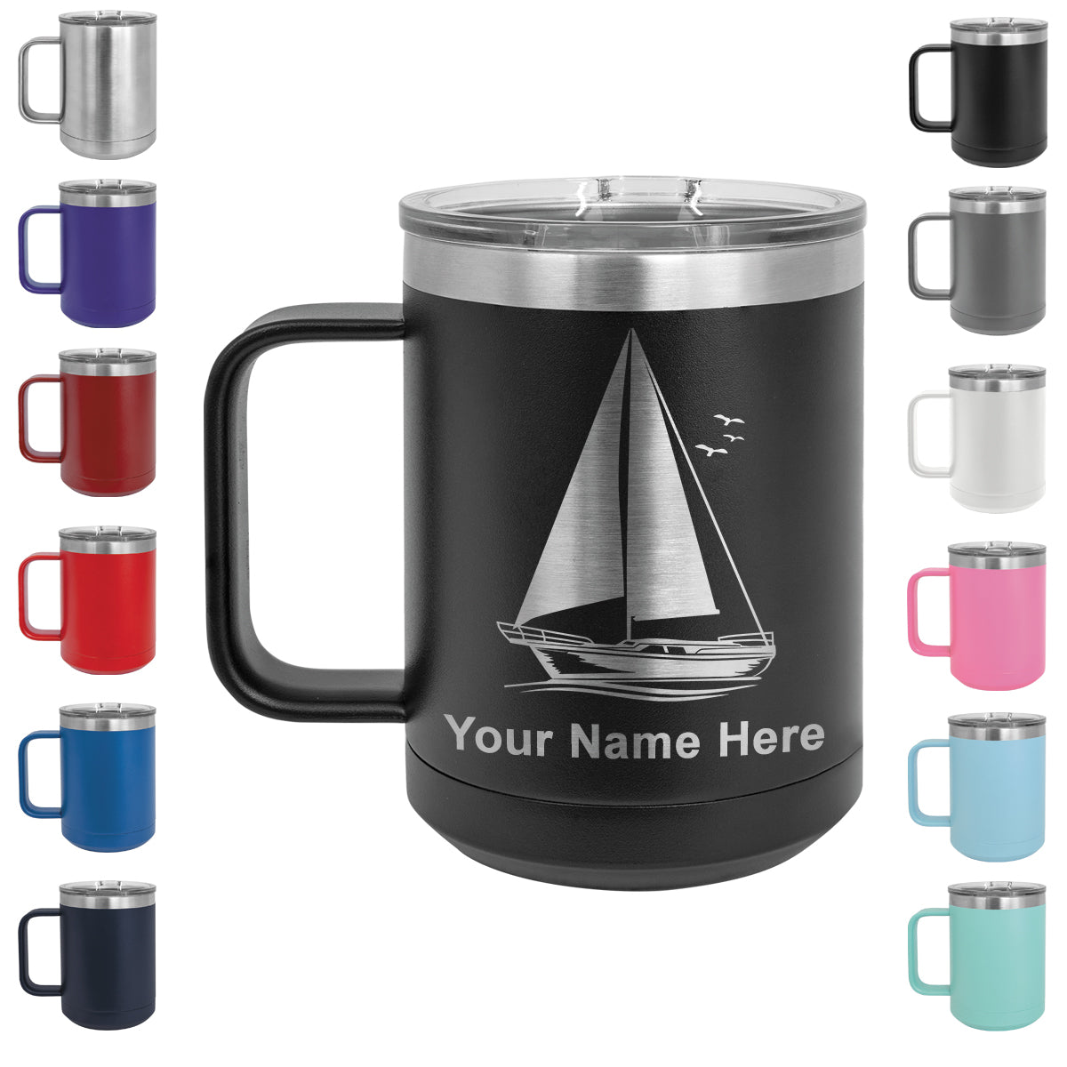 15oz Vacuum Insulated Coffee Mug, Sailboat, Personalized Engraving Included
