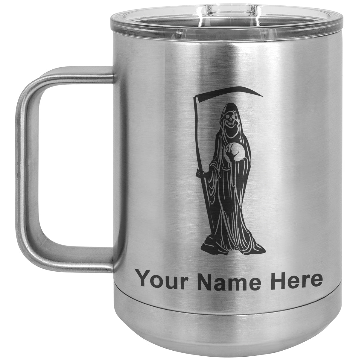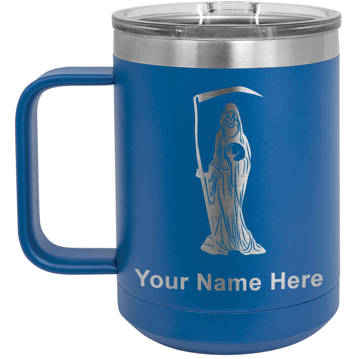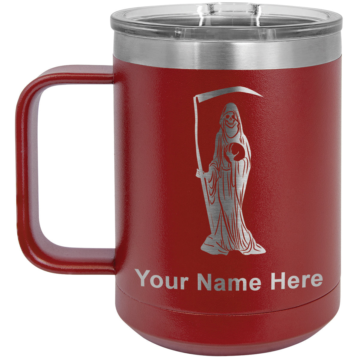 15oz Vacuum Insulated Coffee Mug, Santa Muerte, Personalized Engraving Included
