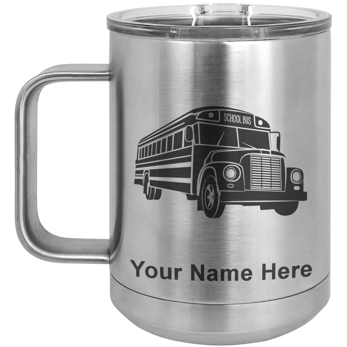 15oz Vacuum Insulated Coffee Mug, School Bus, Personalized Engraving Included