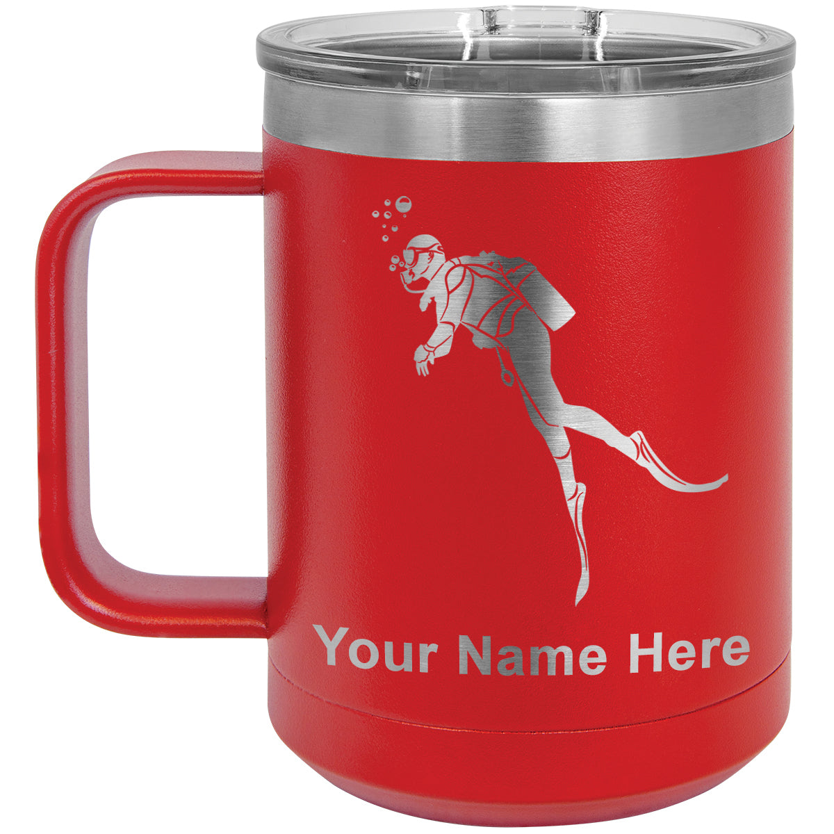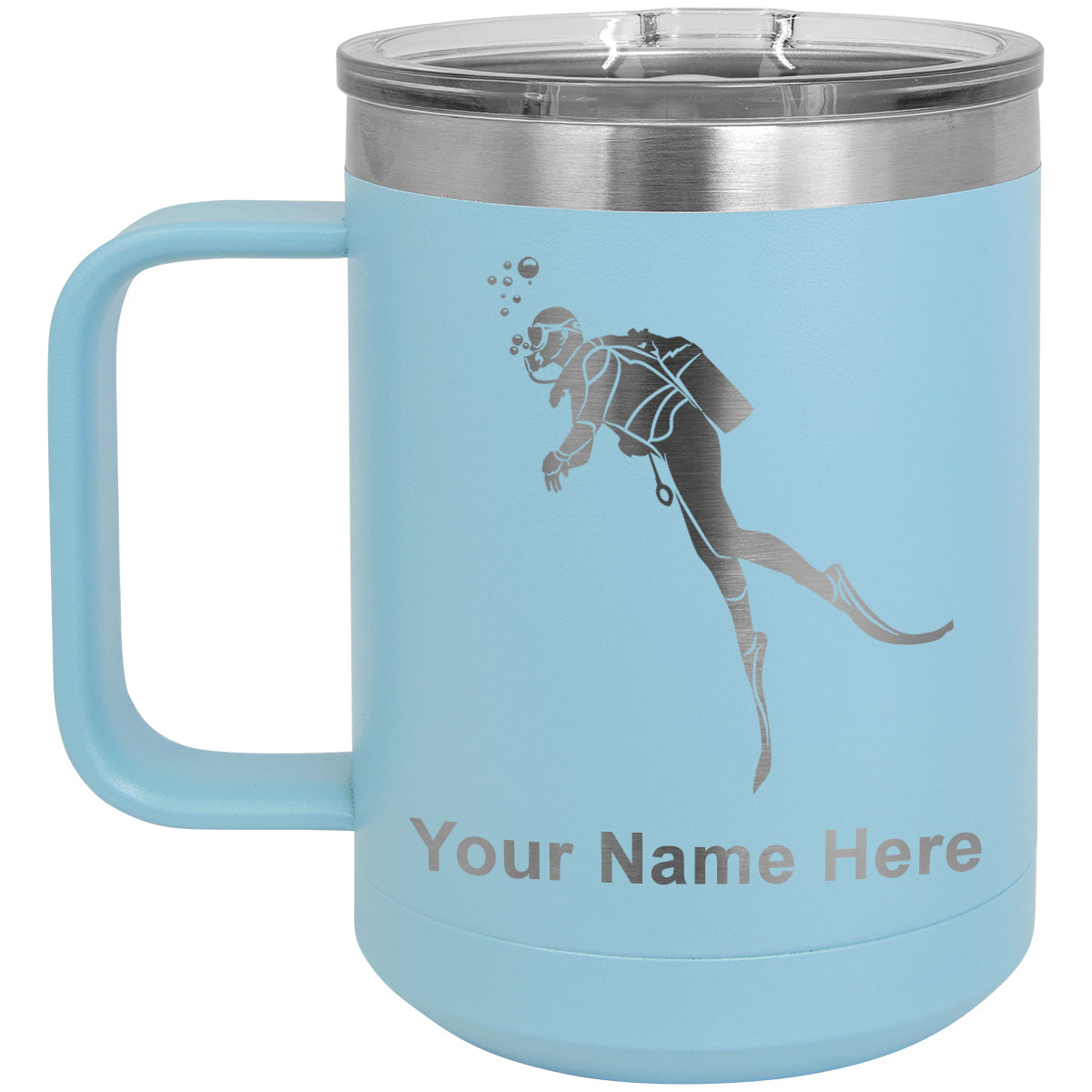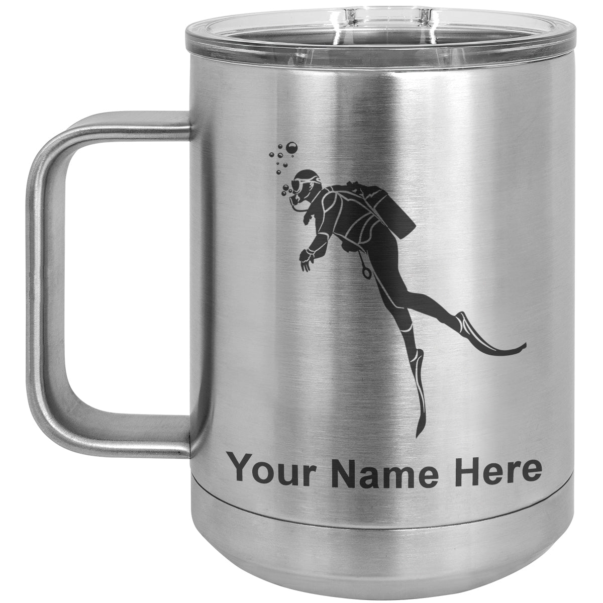 15oz Vacuum Insulated Coffee Mug, Scuba Diver, Personalized Engraving Included