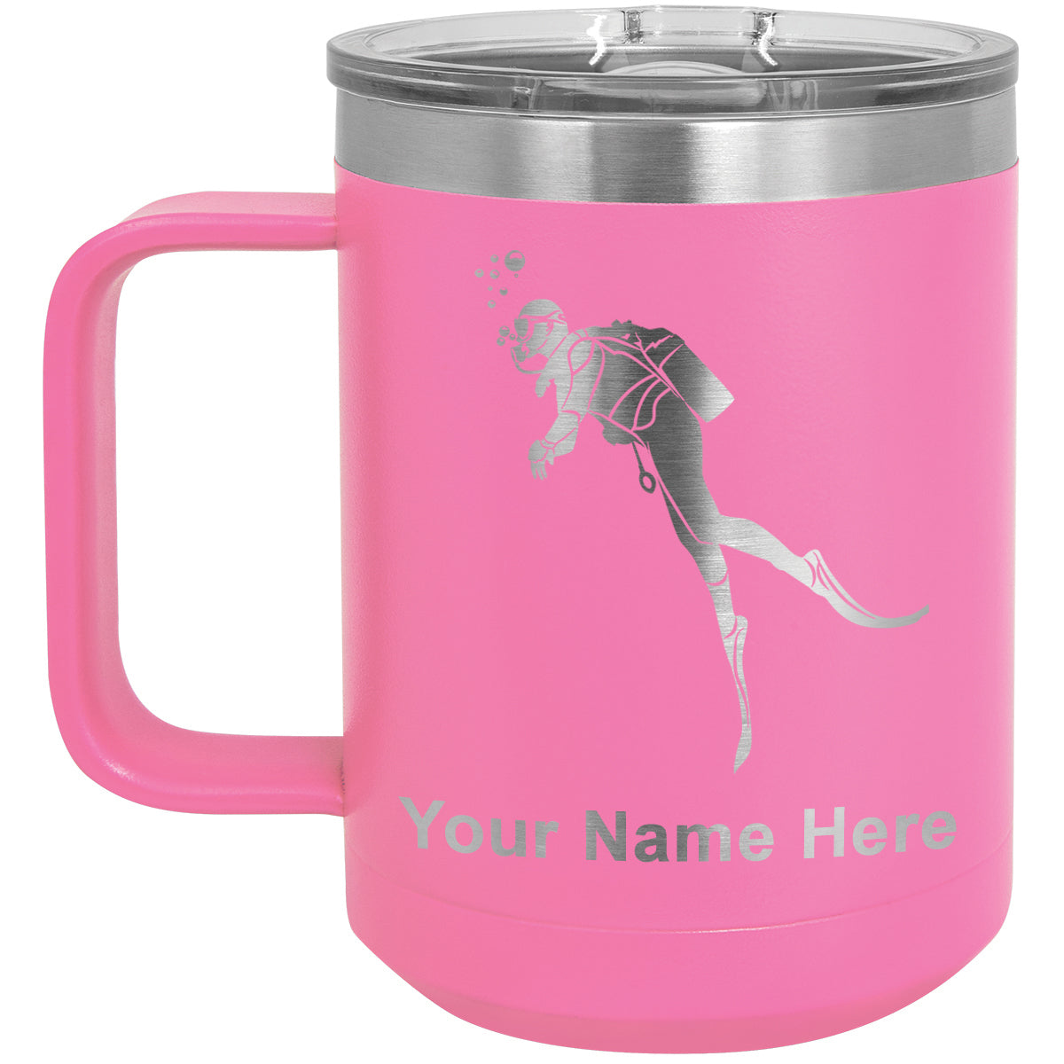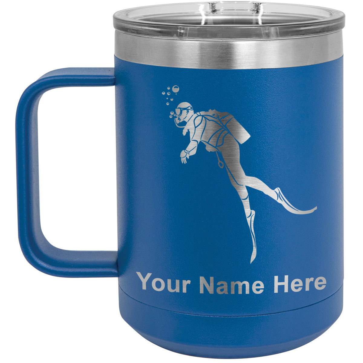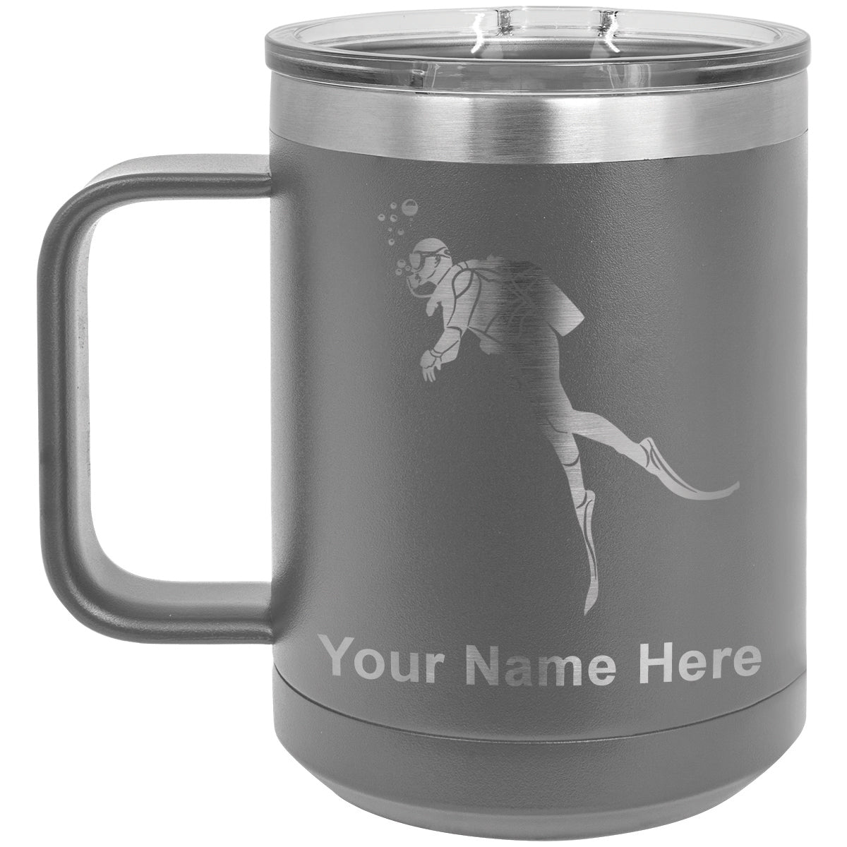 15oz Vacuum Insulated Coffee Mug, Scuba Diver, Personalized Engraving Included