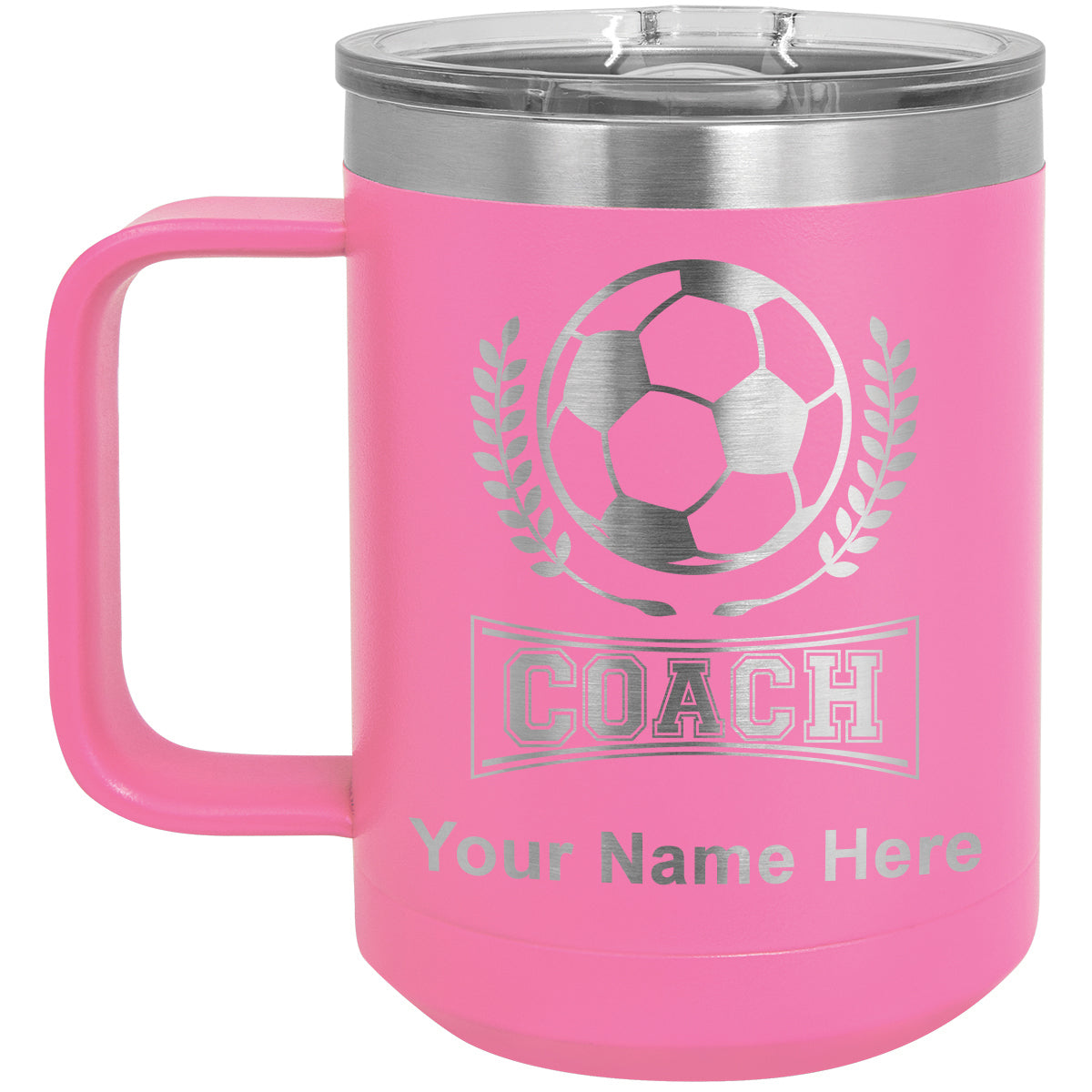 15oz Vacuum Insulated Coffee Mug, Soccer Coach, Personalized Engraving Included