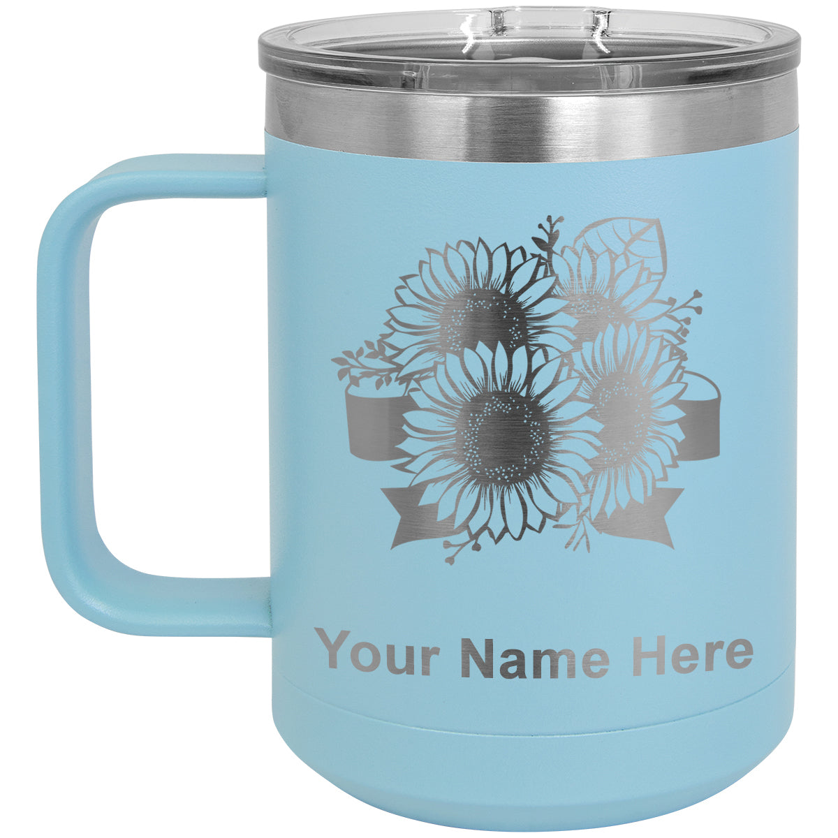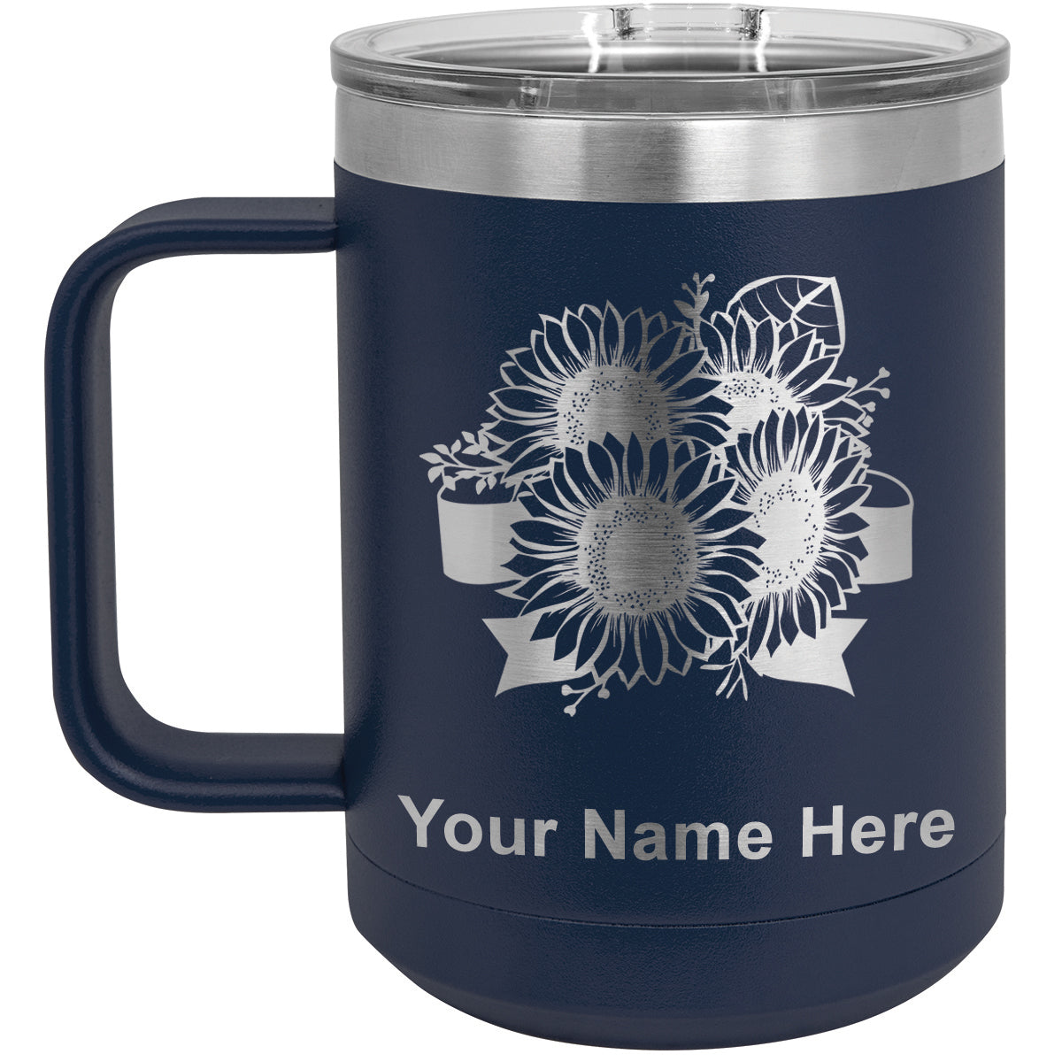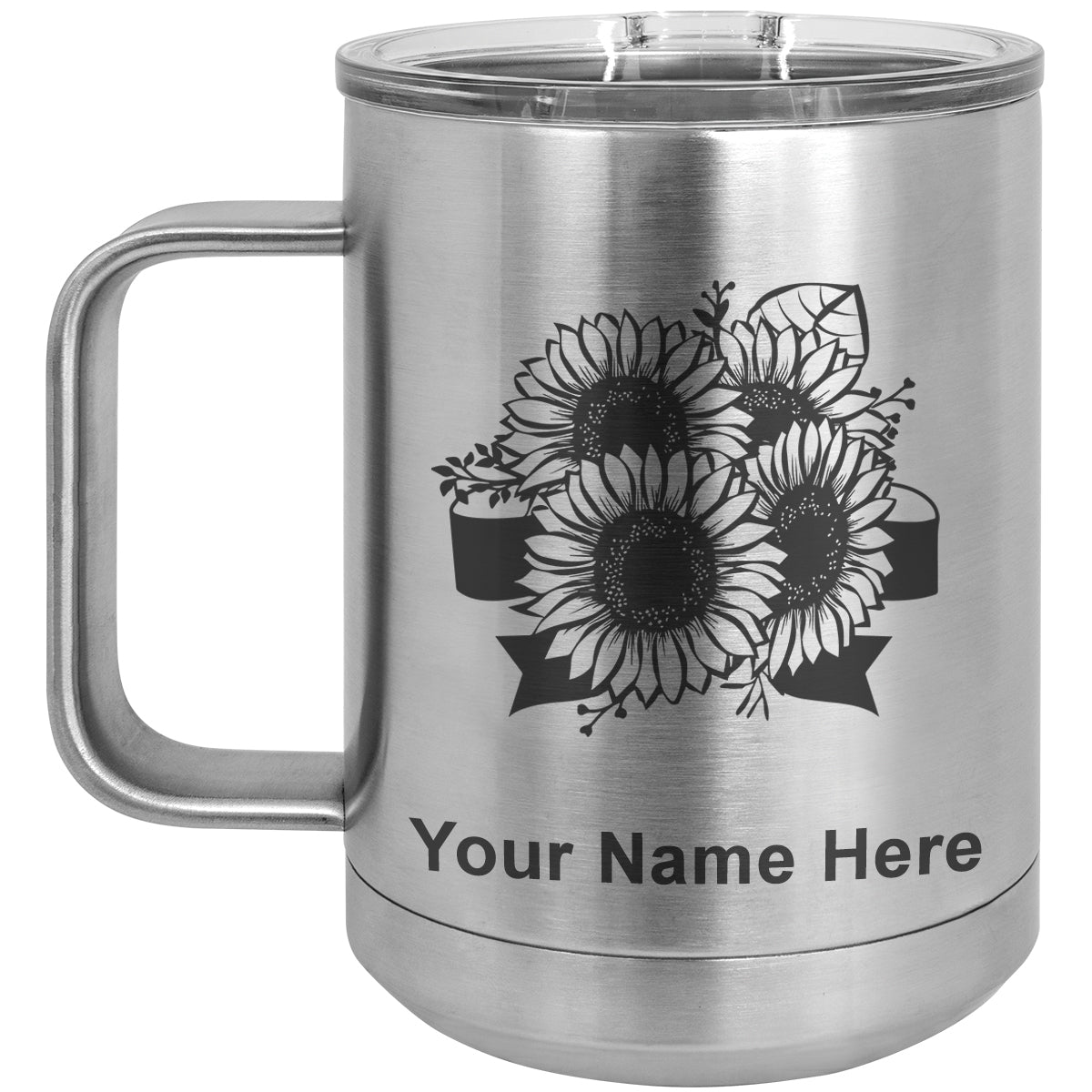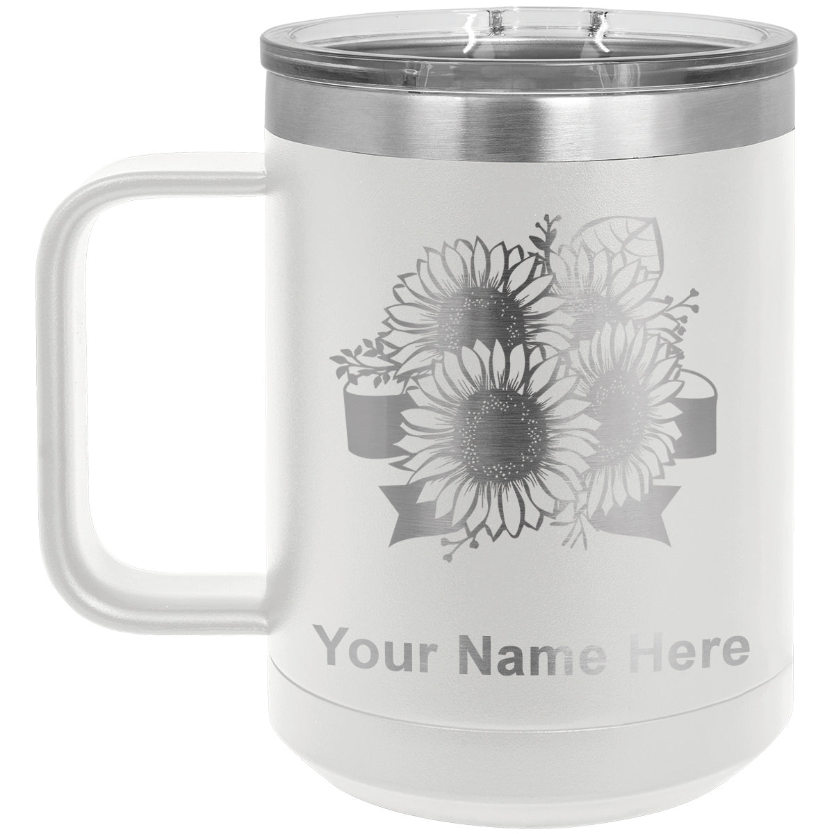 15oz Vacuum Insulated Coffee Mug, Sunflowers, Personalized Engraving Included