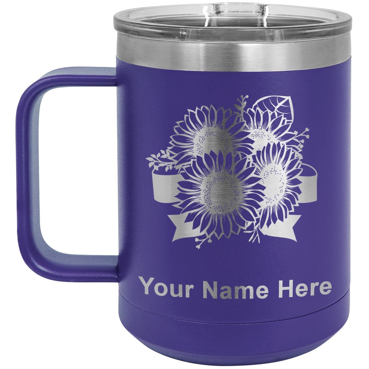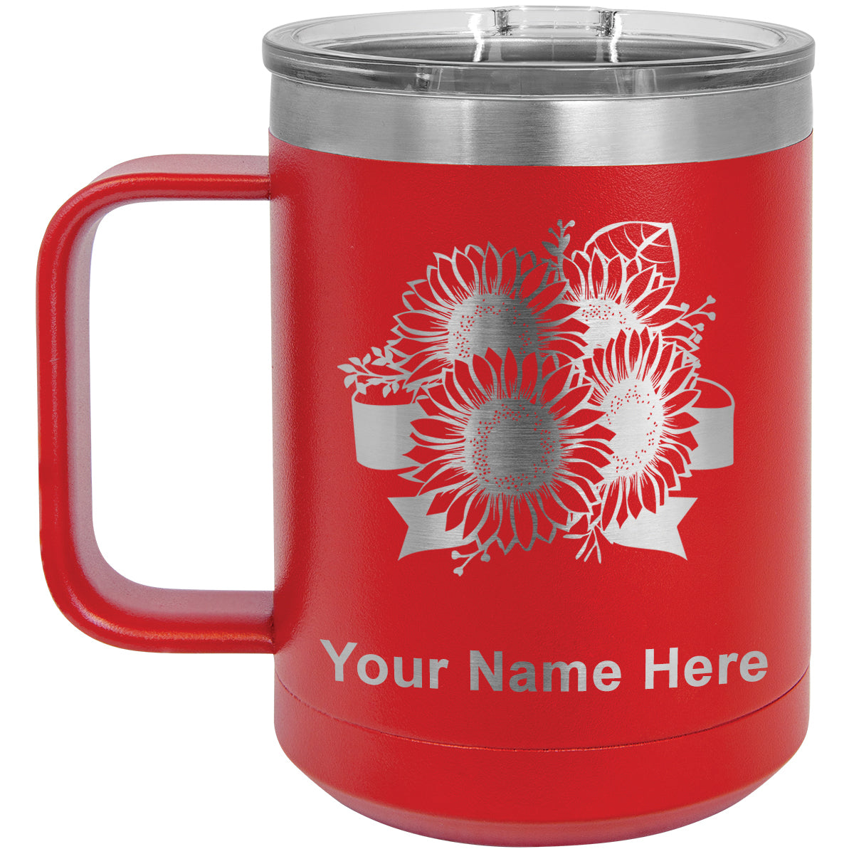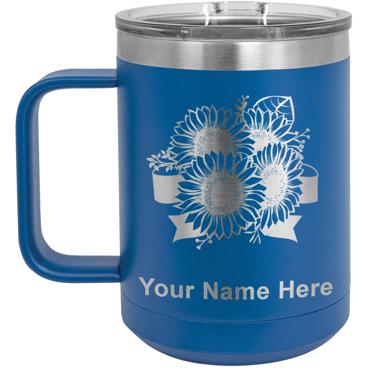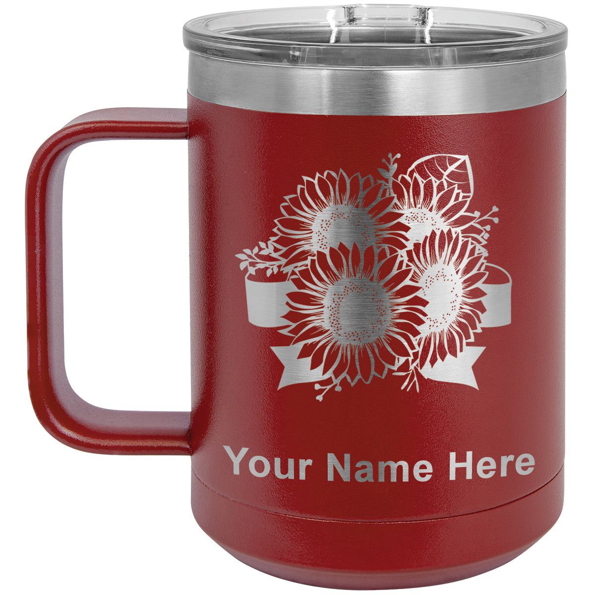15oz Vacuum Insulated Coffee Mug, Sunflowers, Personalized Engraving Included