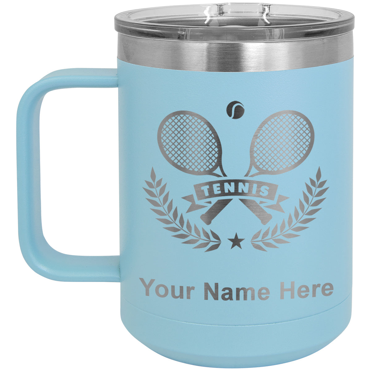 15oz Vacuum Insulated Coffee Mug, Tennis Rackets, Personalized Engraving Included
