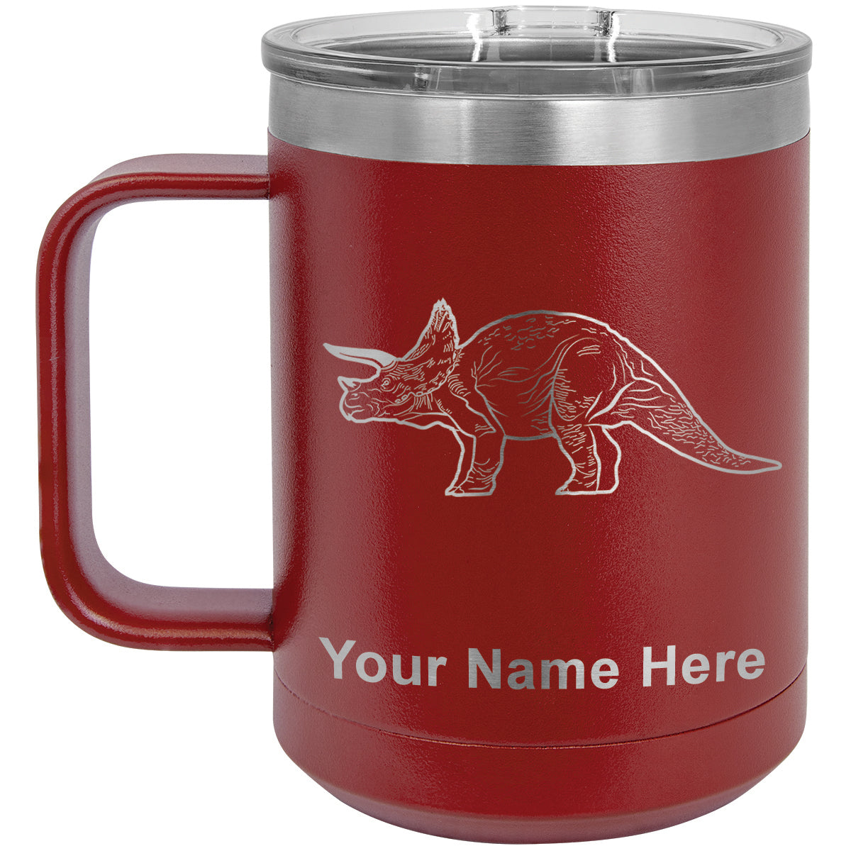15oz Vacuum Insulated Coffee Mug, Triceratops Dinosaur, Personalized Engraving Included