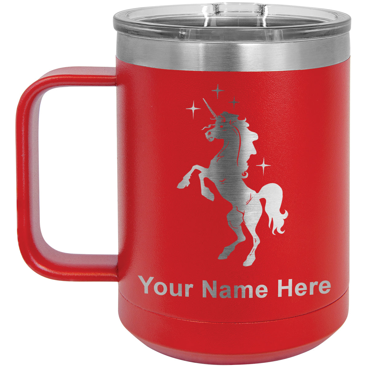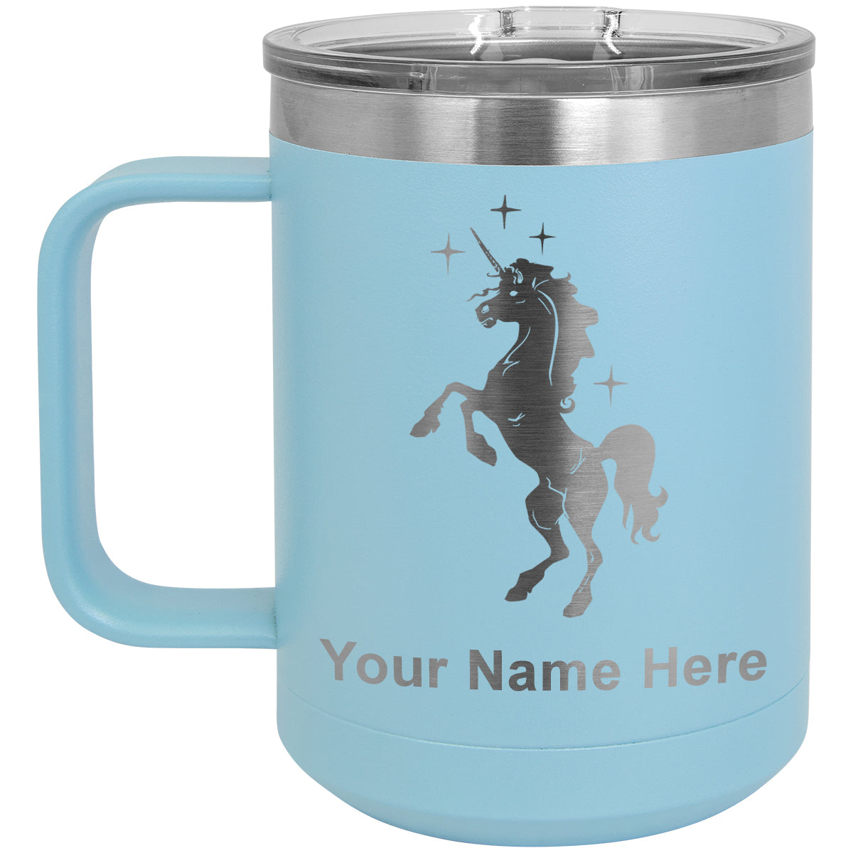 15oz Vacuum Insulated Coffee Mug, Unicorn, Personalized Engraving Included