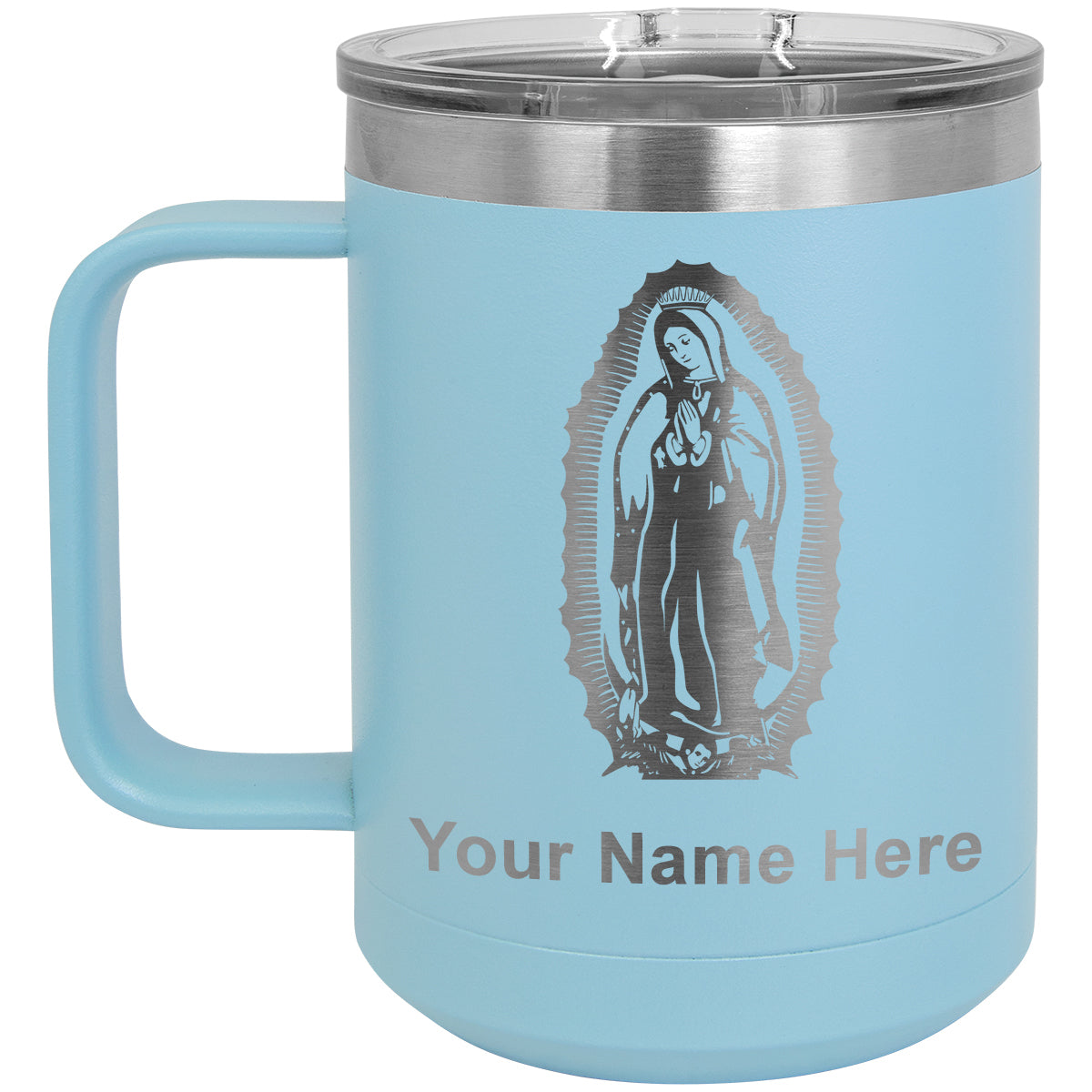 15oz Vacuum Insulated Coffee Mug, Virgen de Guadalupe, Personalized Engraving Included