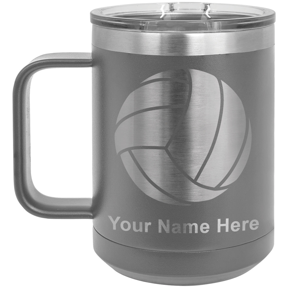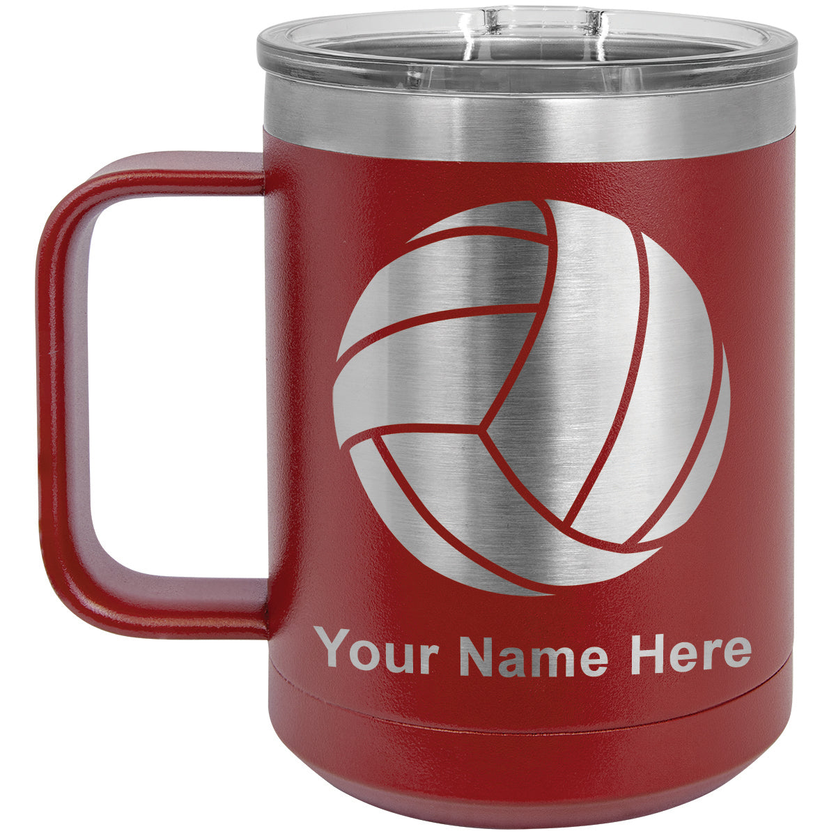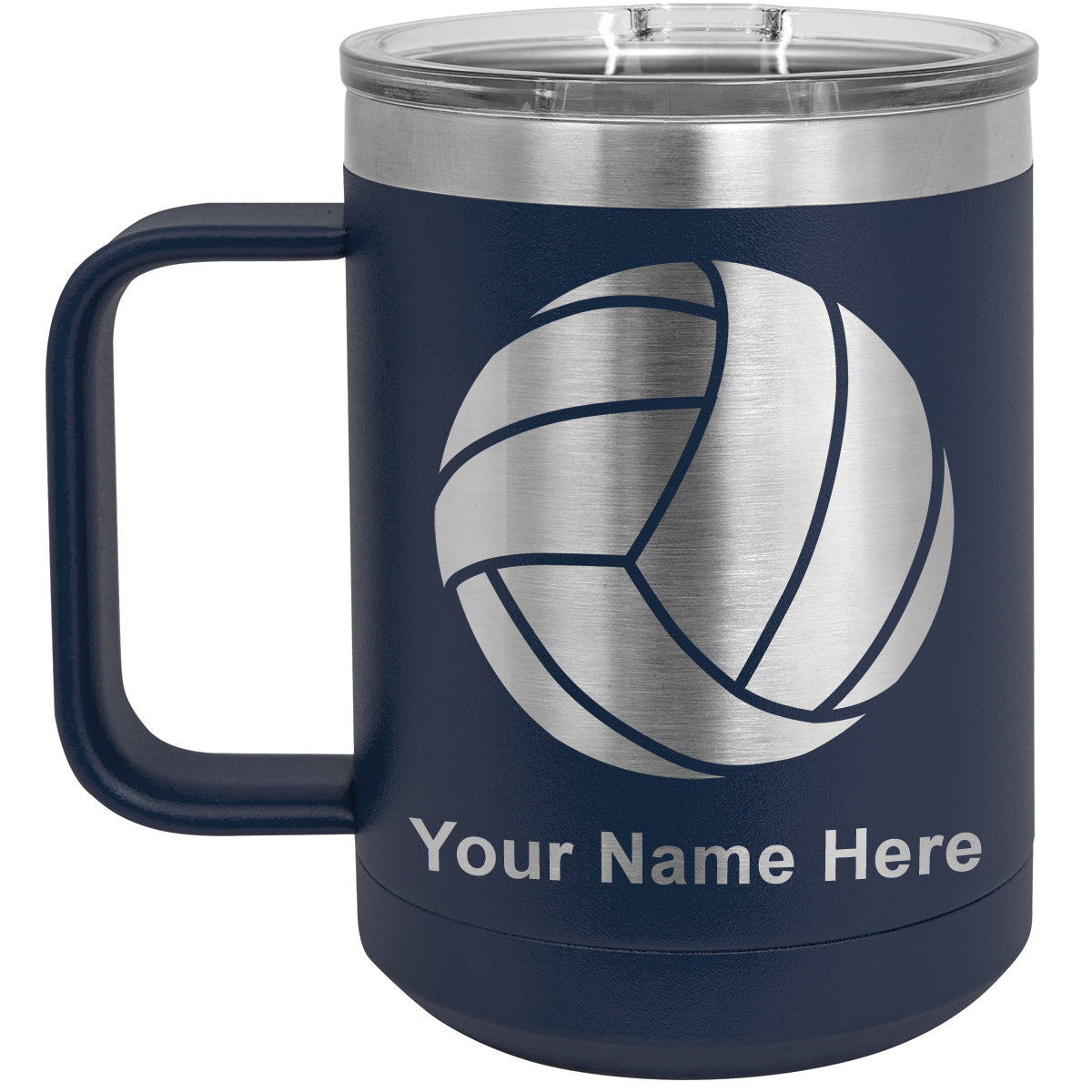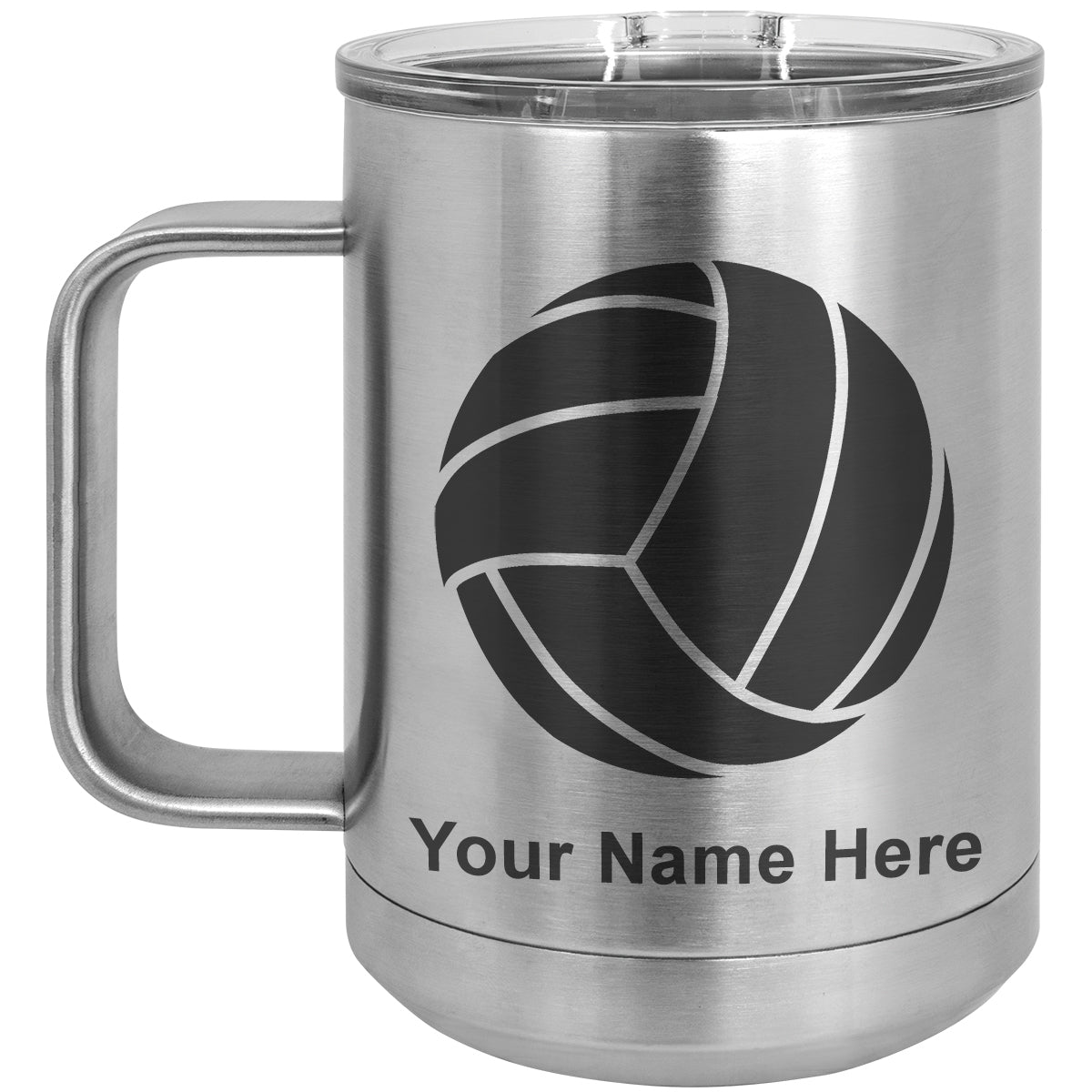 15oz Vacuum Insulated Coffee Mug, Volleyball Ball, Personalized Engraving Included