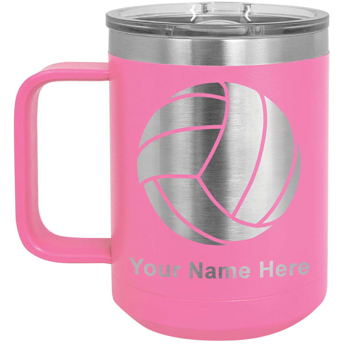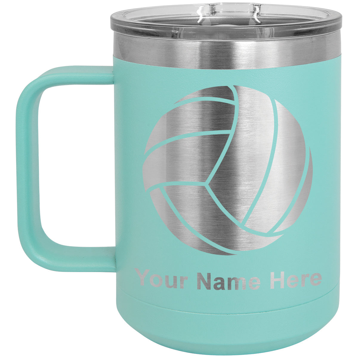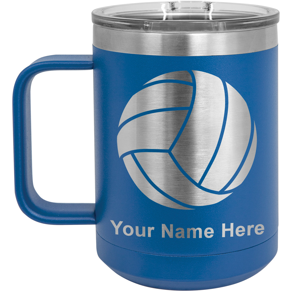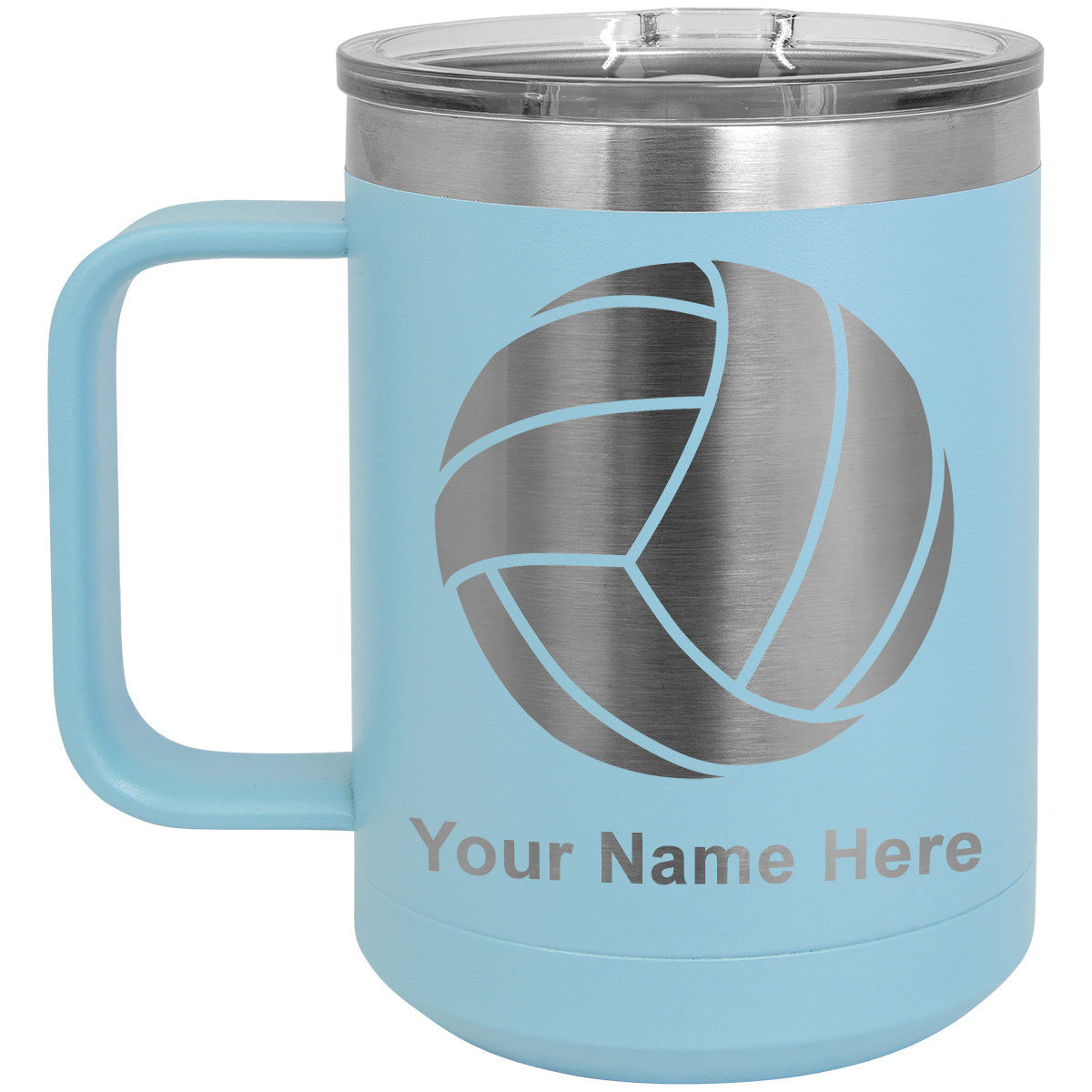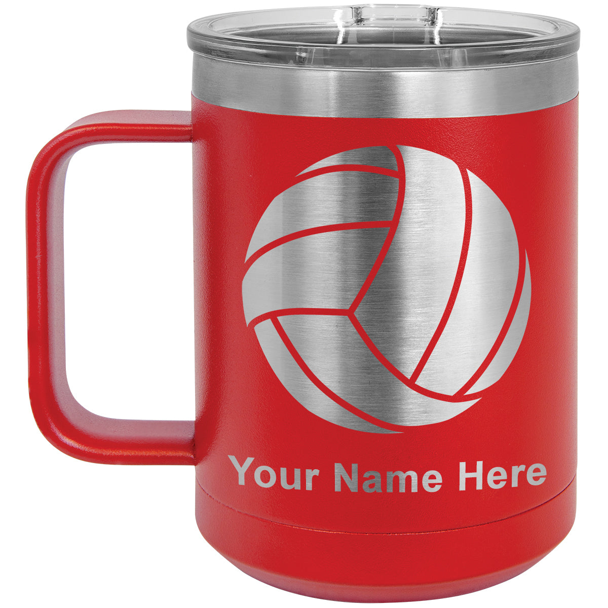 15oz Vacuum Insulated Coffee Mug, Volleyball Ball, Personalized Engraving Included