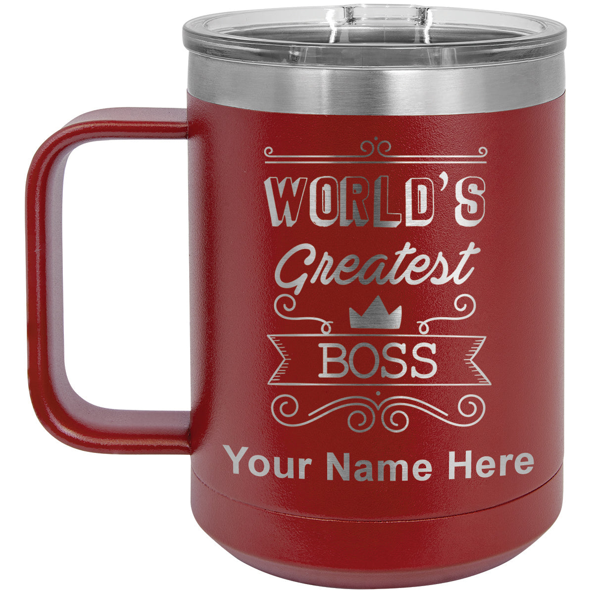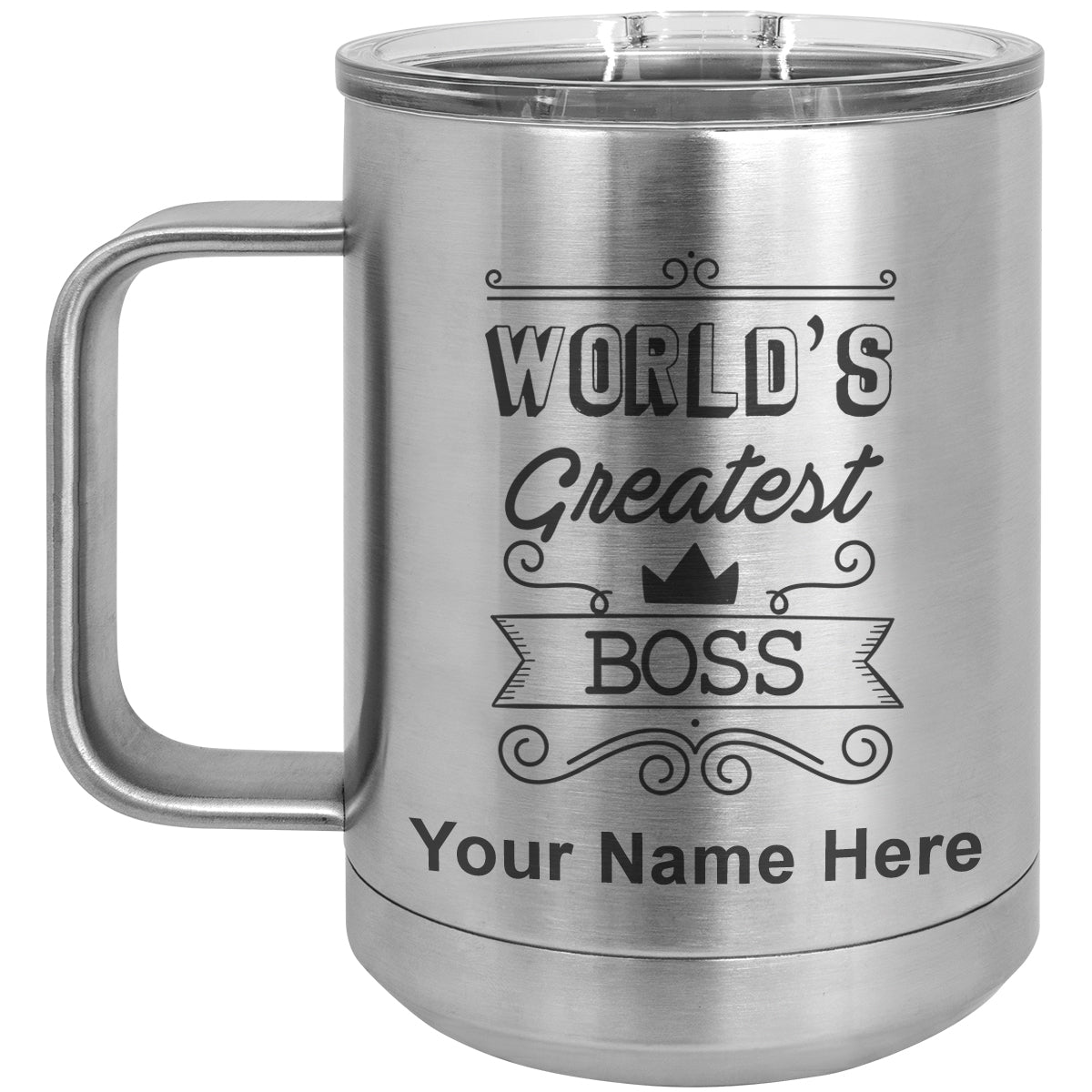15oz Vacuum Insulated Coffee Mug, World's Greatest Boss, Personalized Engraving Included