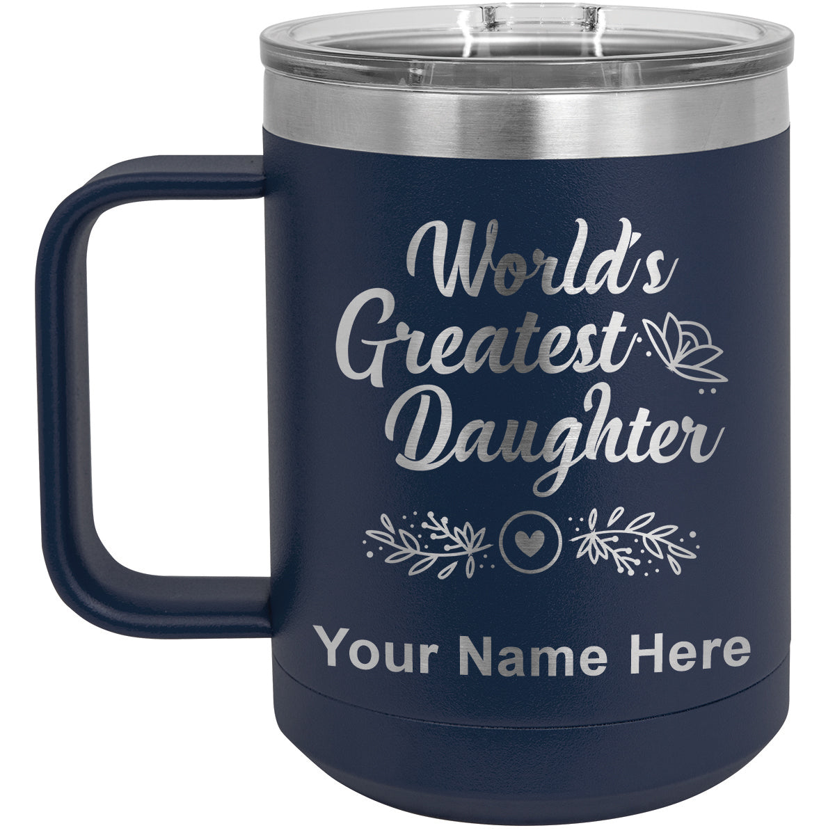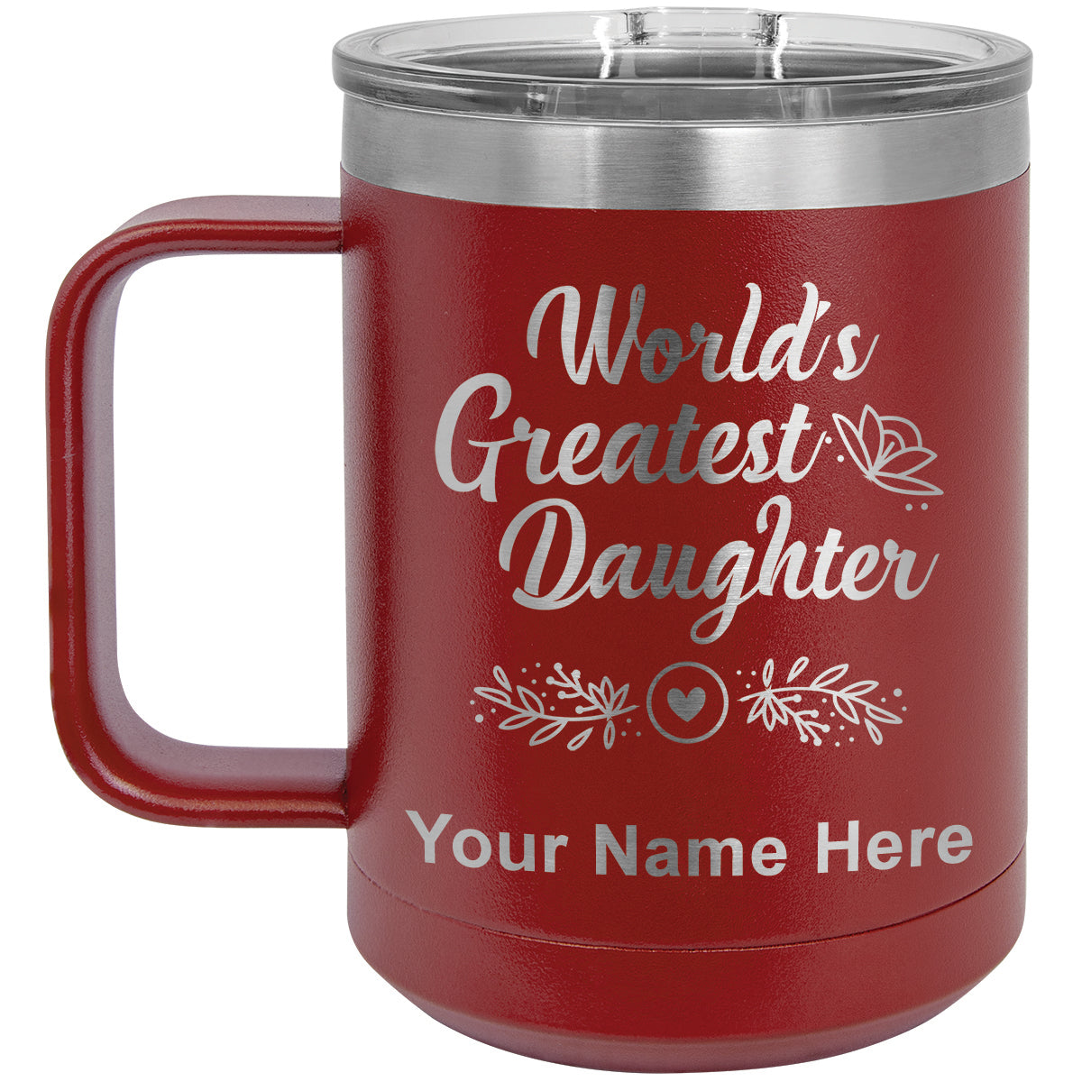 15oz Vacuum Insulated Coffee Mug, World's Greatest Daughter, Personalized Engraving Included