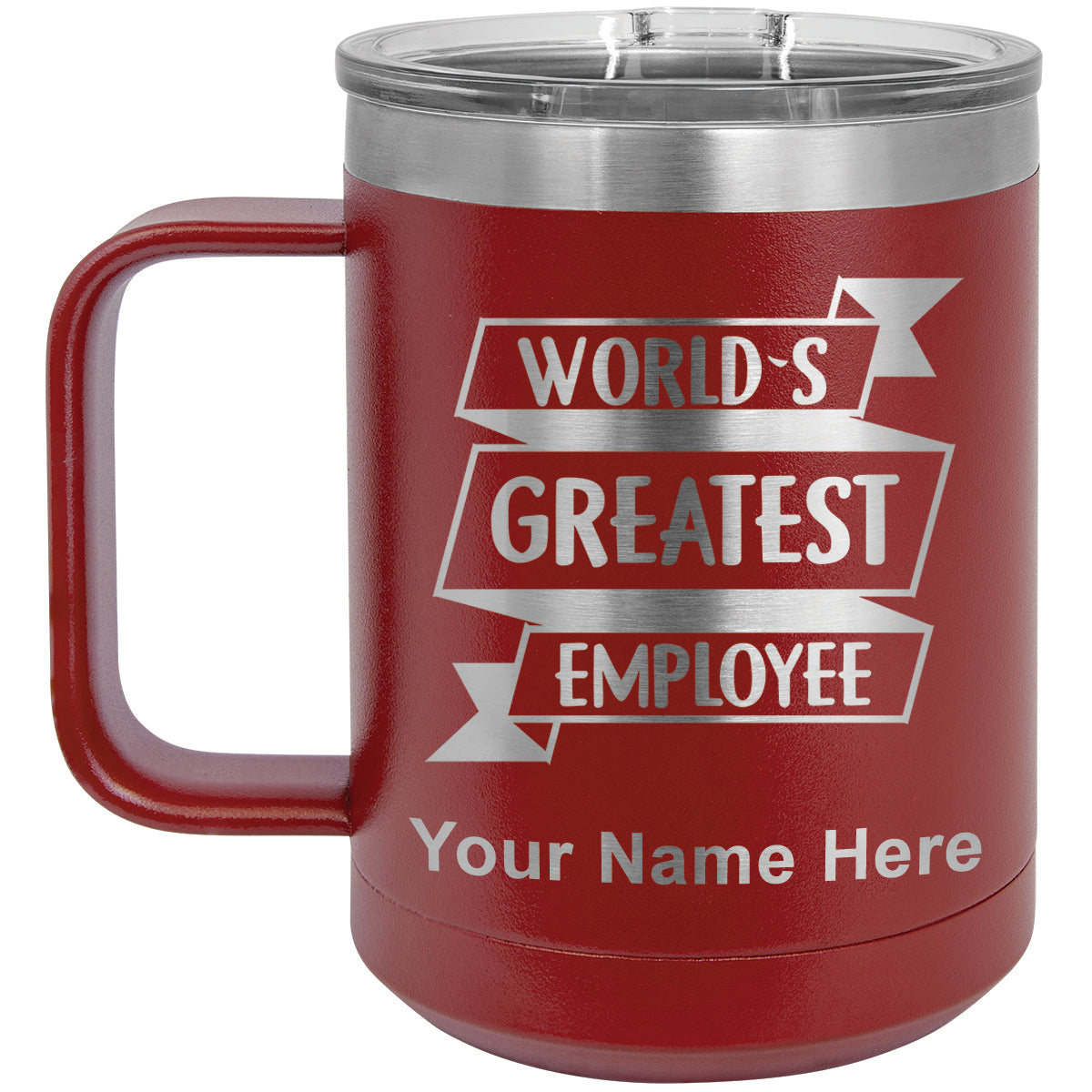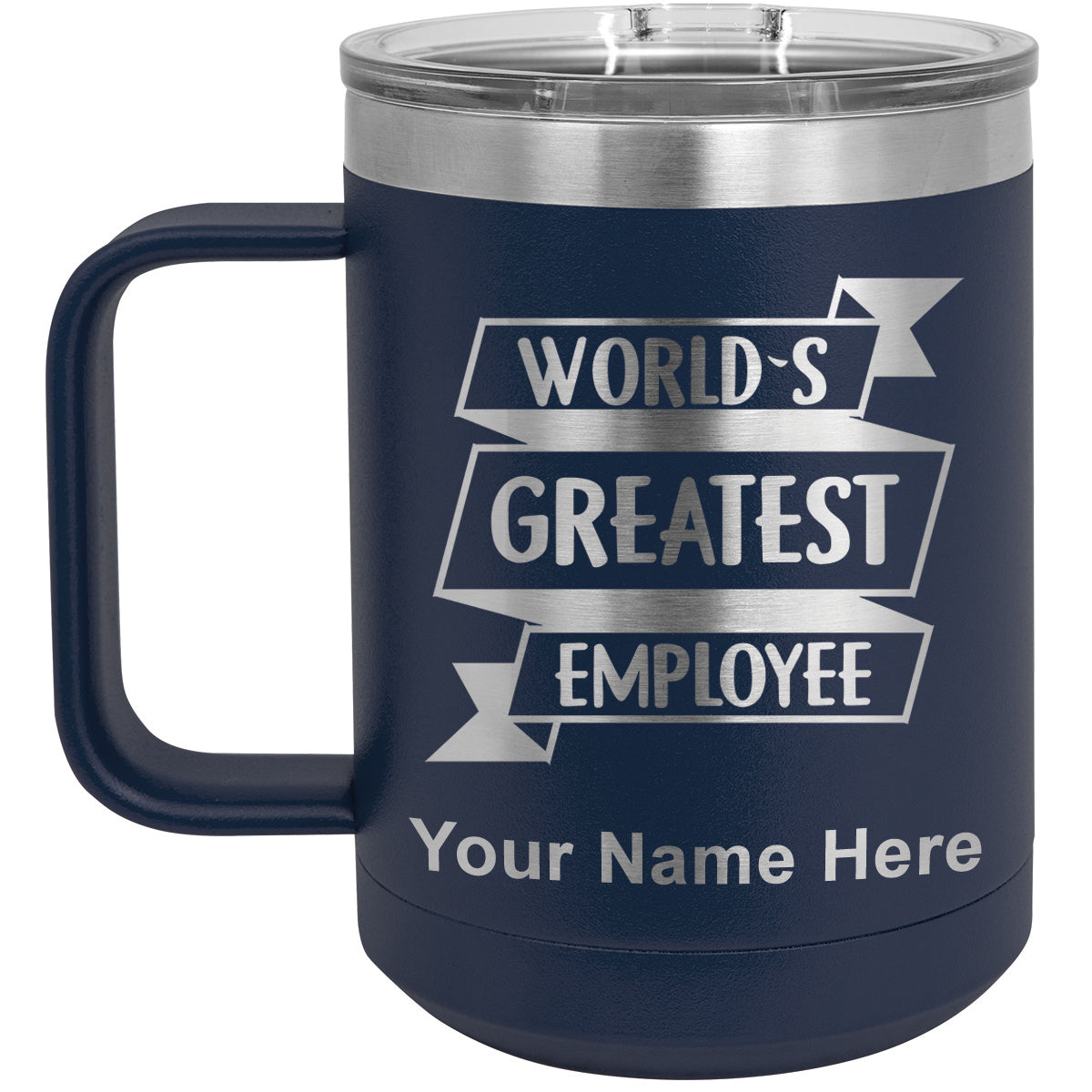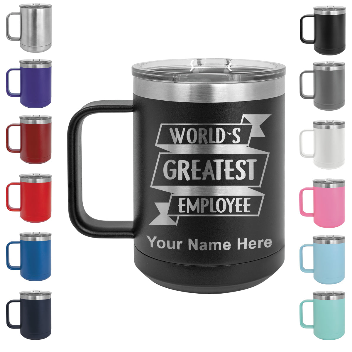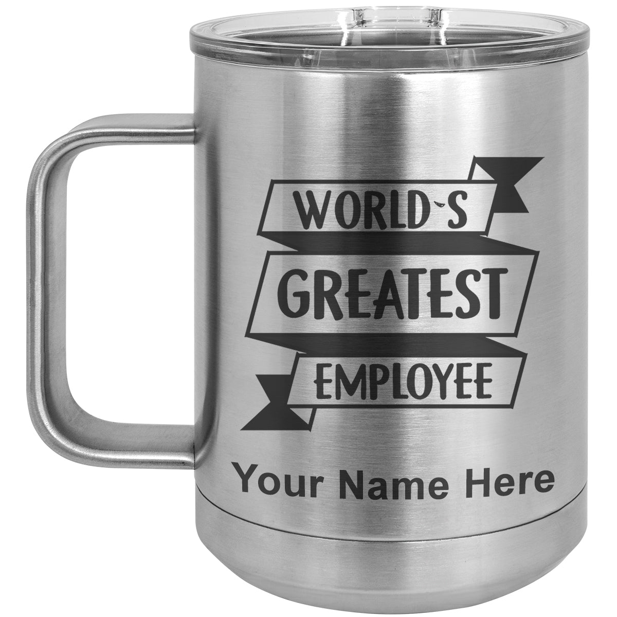 15oz Vacuum Insulated Coffee Mug, World's Greatest Employee, Personalized Engraving Included