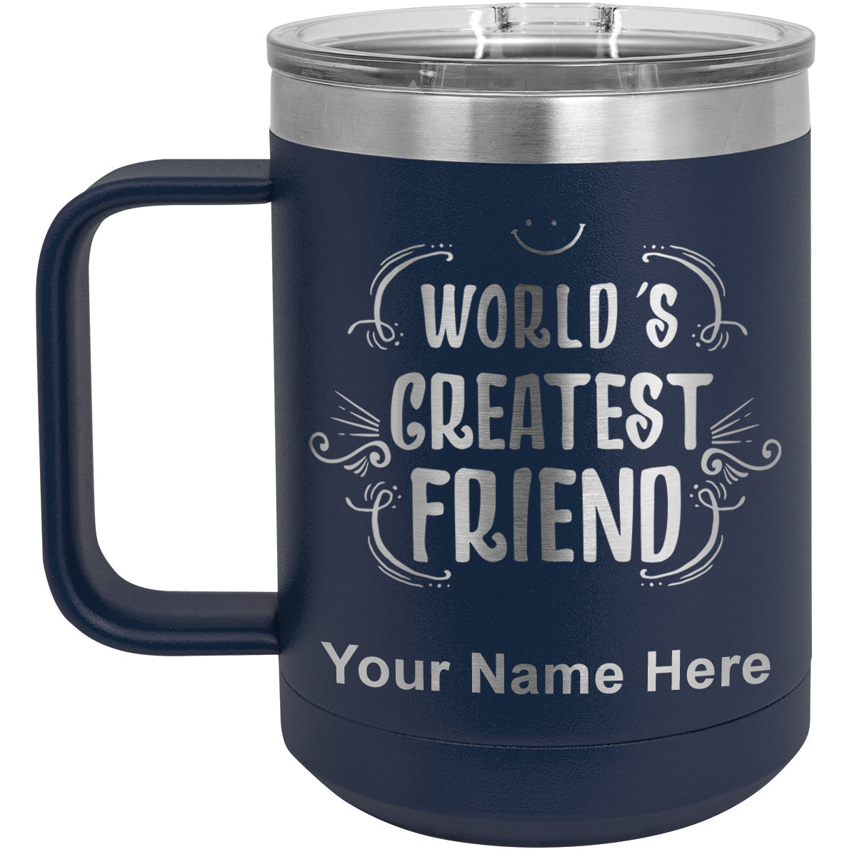 15oz Vacuum Insulated Coffee Mug, World's Greatest Friend, Personalized Engraving Included