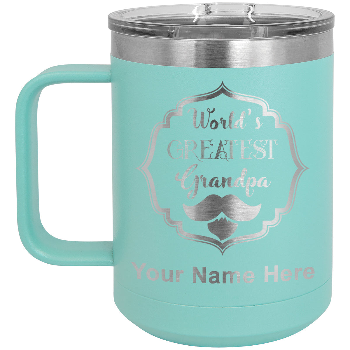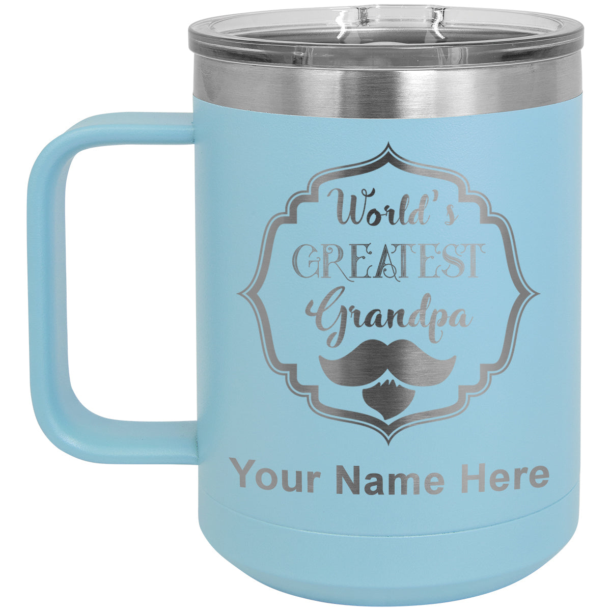 15oz Vacuum Insulated Coffee Mug, World's Greatest Grandpa, Personalized Engraving Included