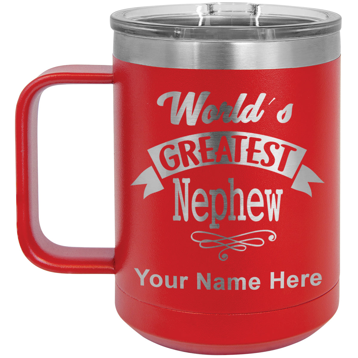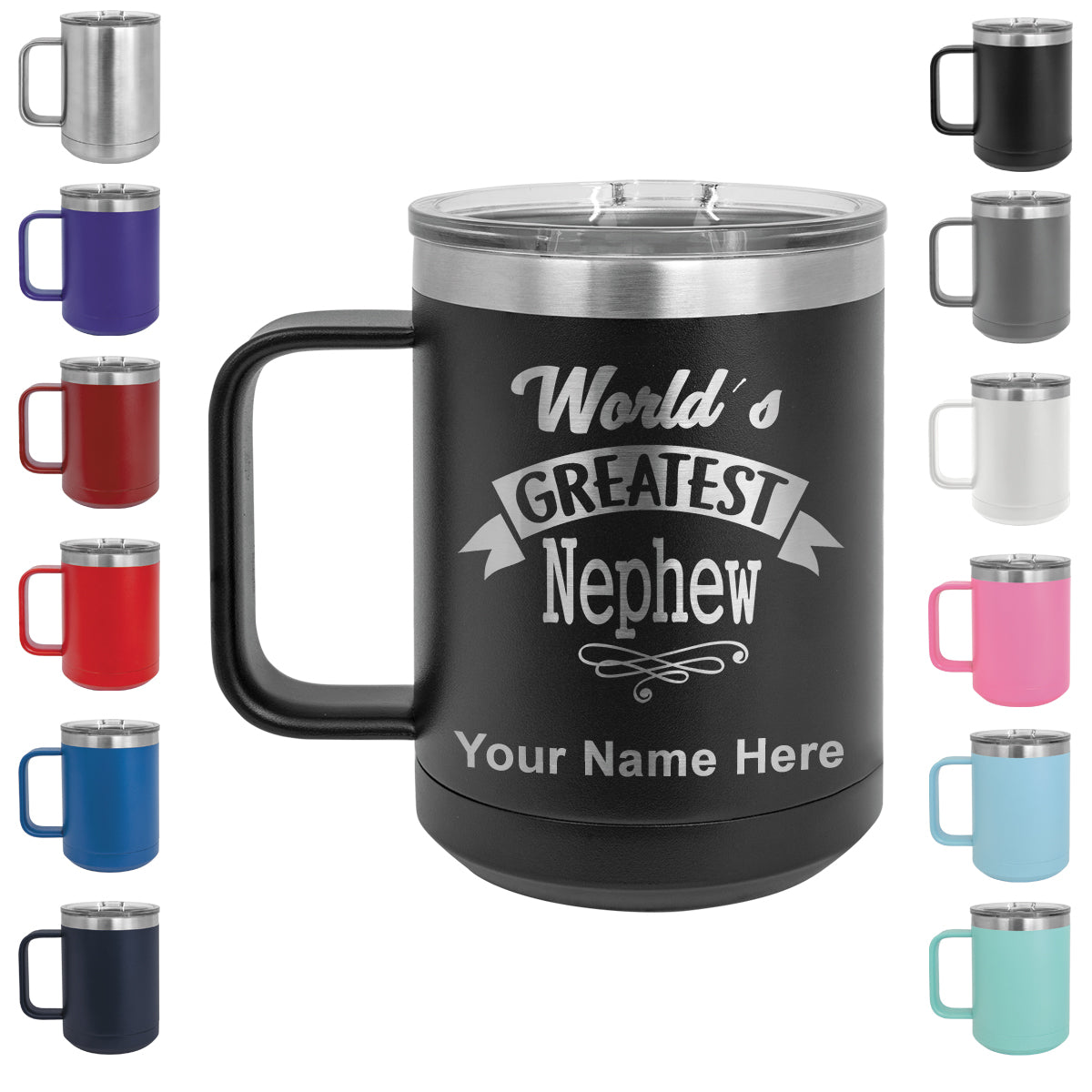 15oz Vacuum Insulated Coffee Mug, World's Greatest Nephew, Personalized Engraving Included