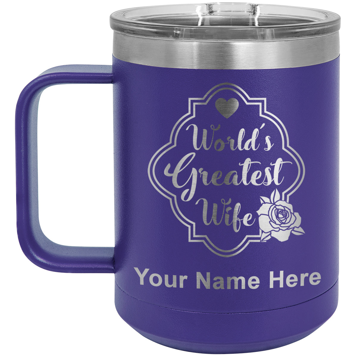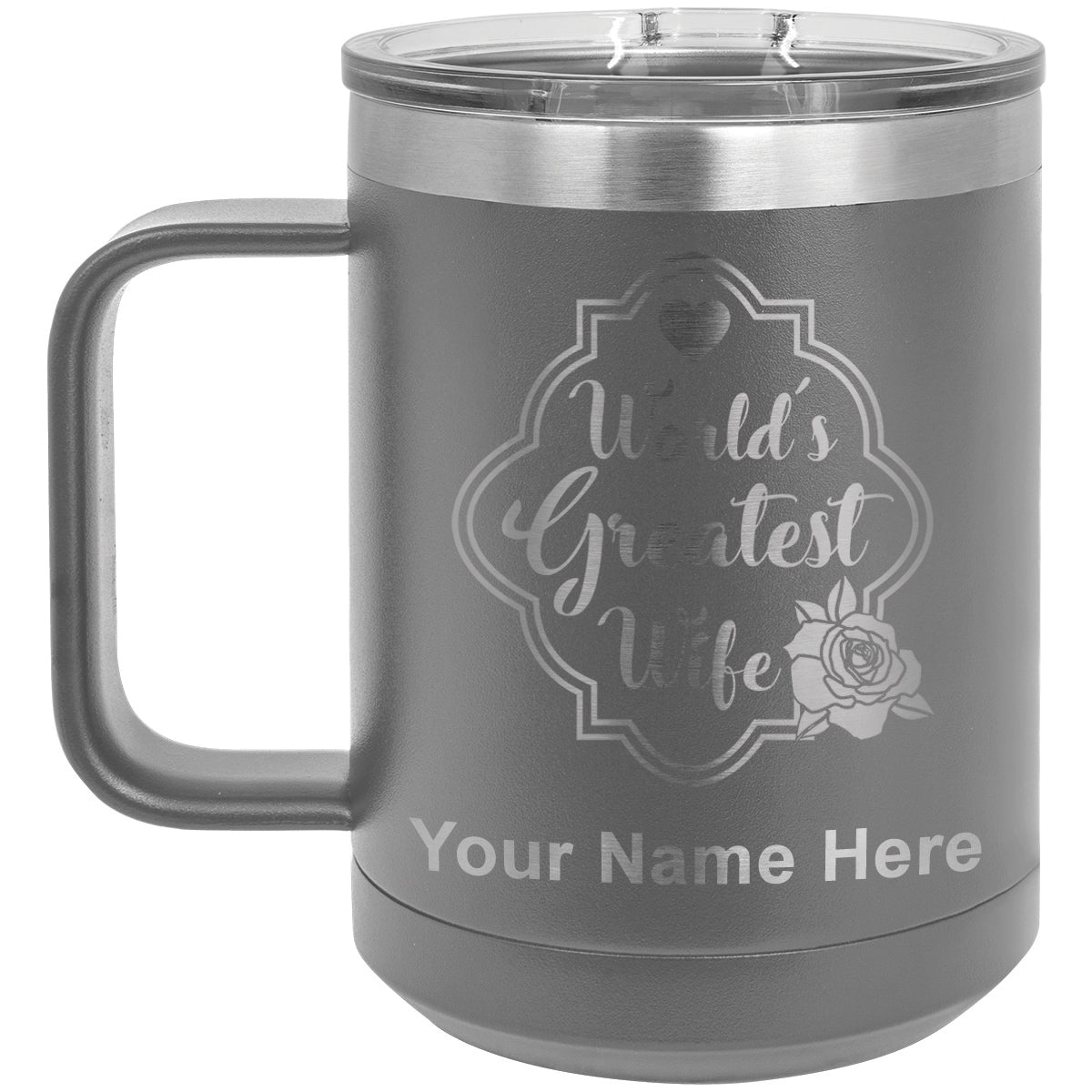 15oz Vacuum Insulated Coffee Mug, World's Greatest Wife, Personalized Engraving Included