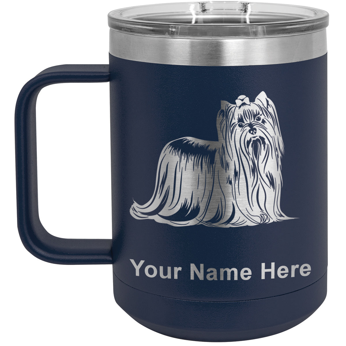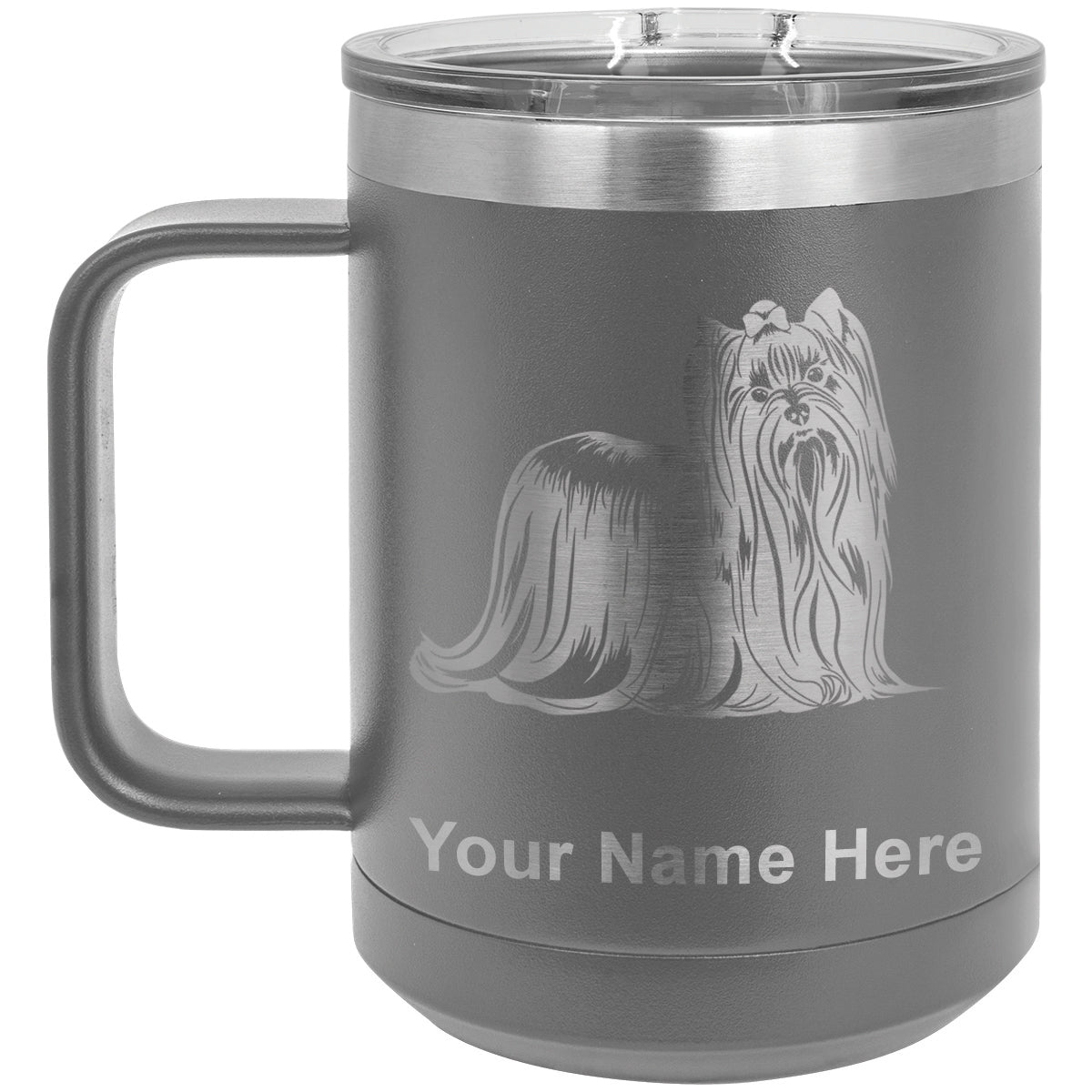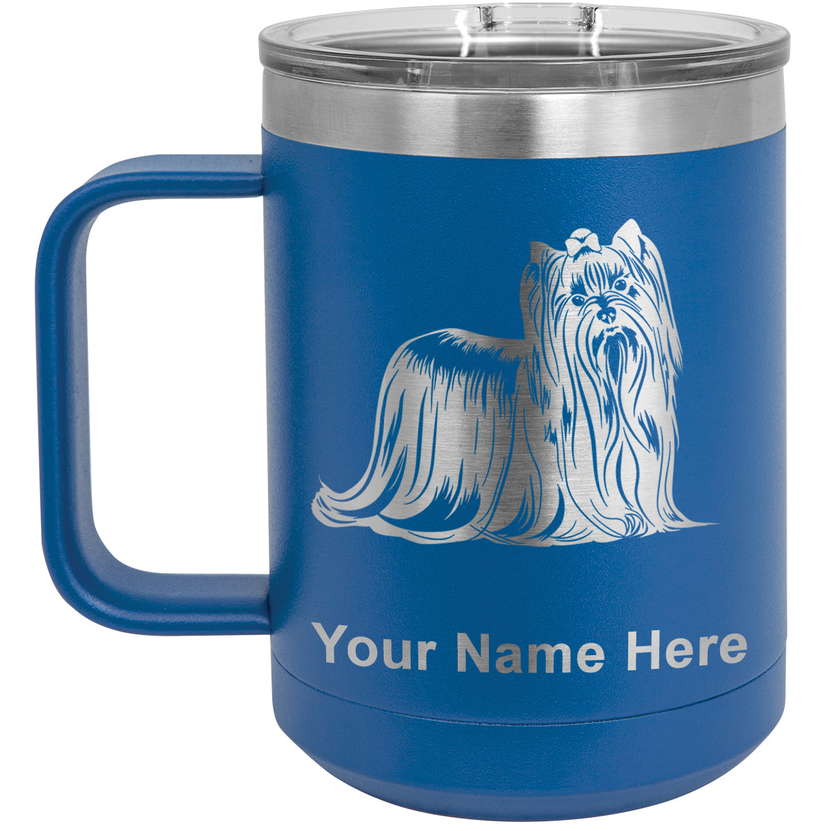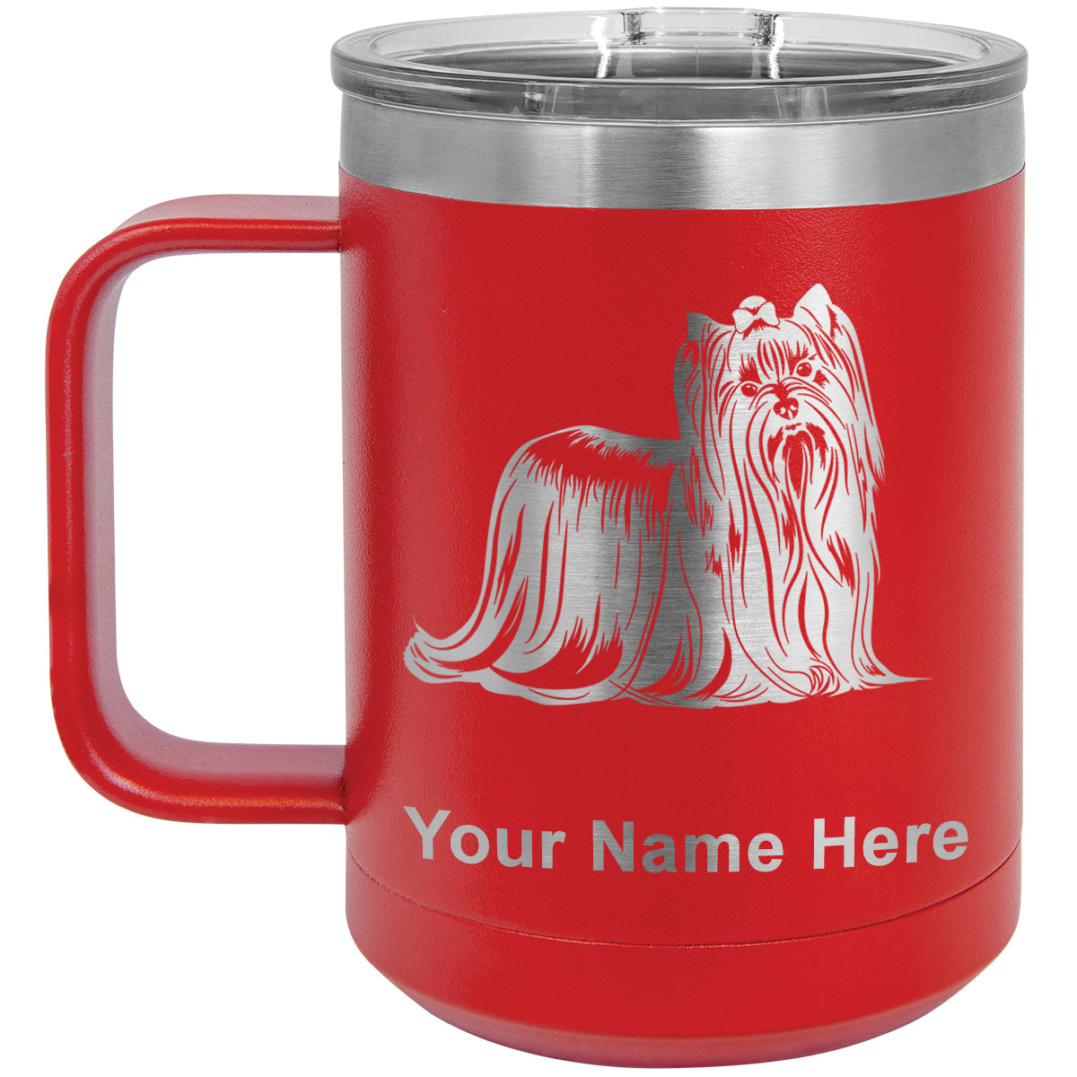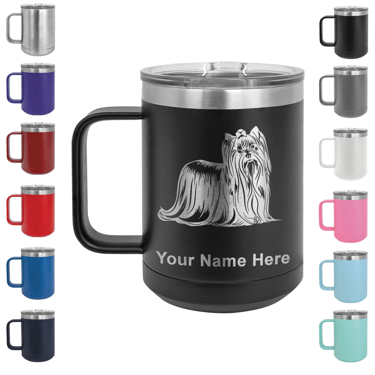 15oz Vacuum Insulated Coffee Mug, Yorkshire Terrier Dog, Personalized Engraving Included