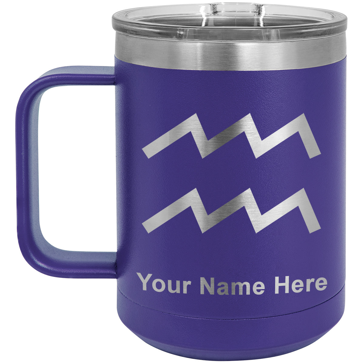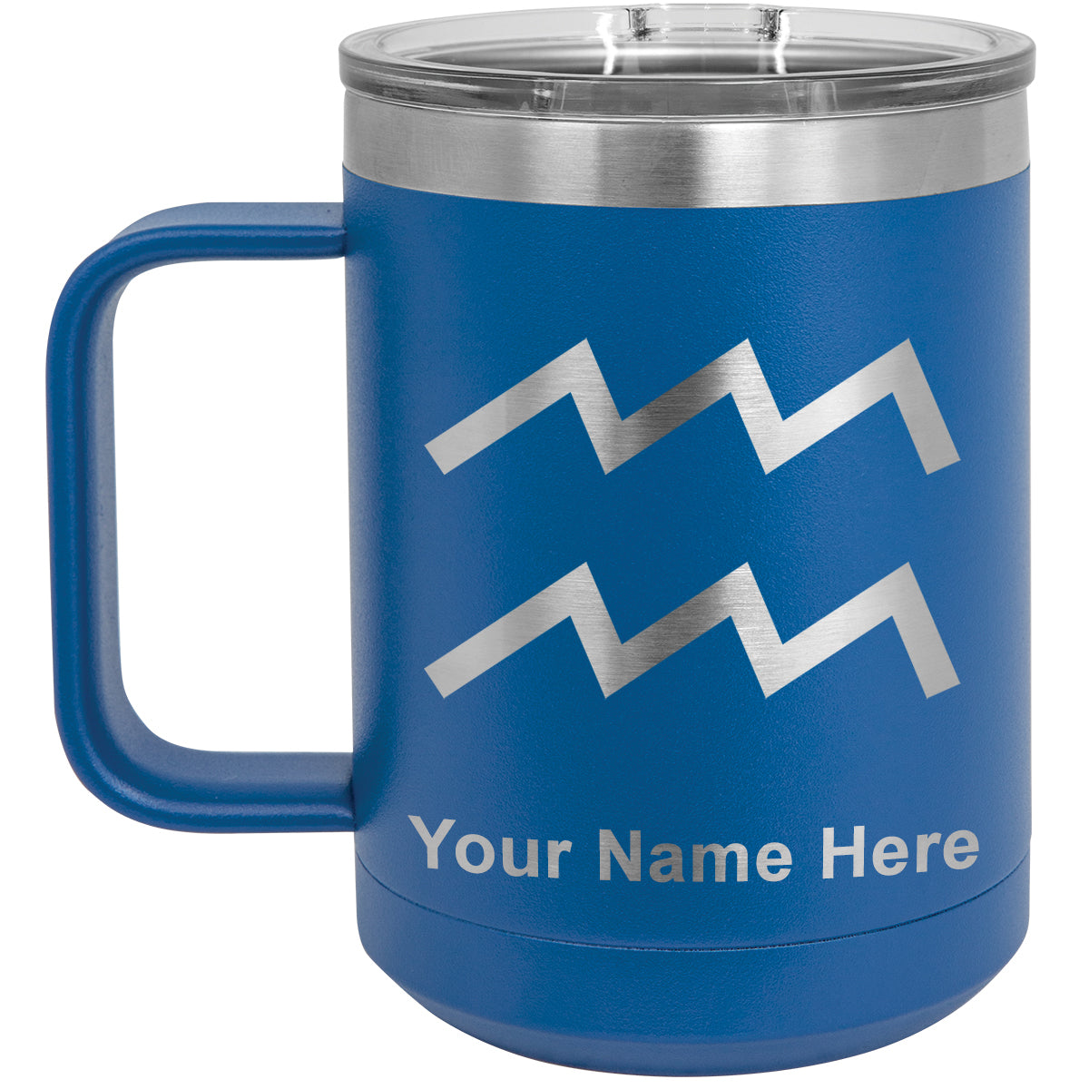 15oz Vacuum Insulated Coffee Mug, Zodiac Sign Aquarius, Personalized Engraving Included