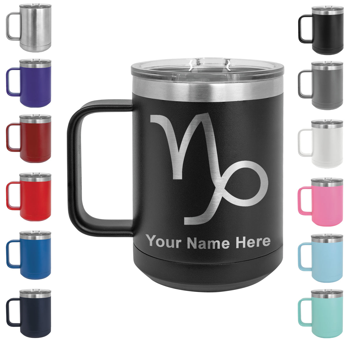 15oz Vacuum Insulated Coffee Mug, Zodiac Sign Capricorn, Personalized Engraving Included