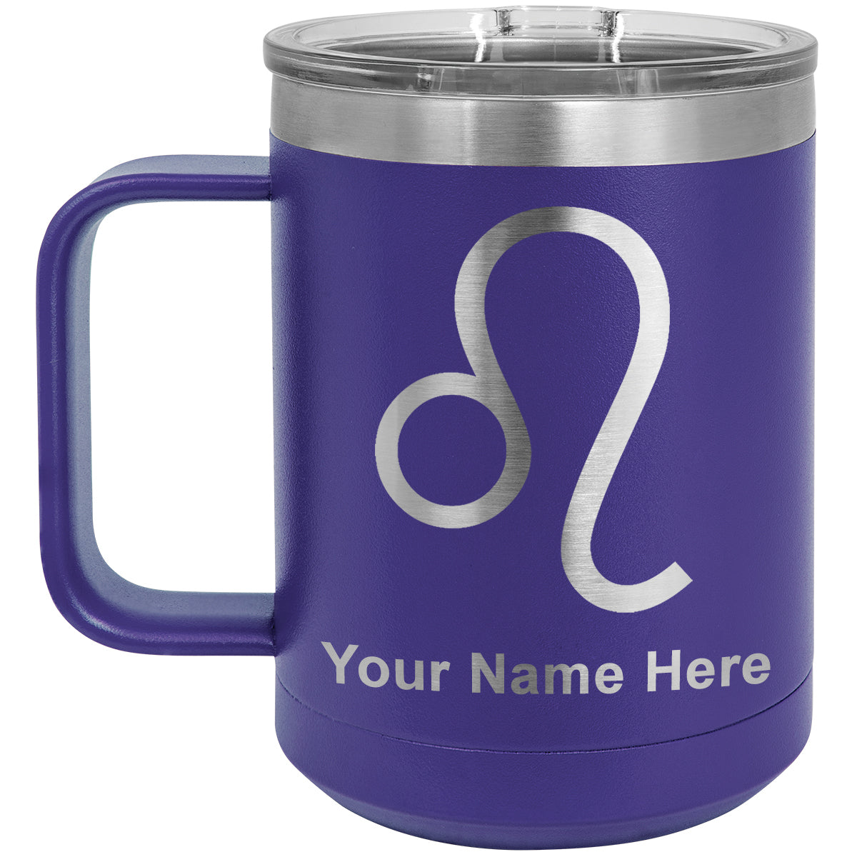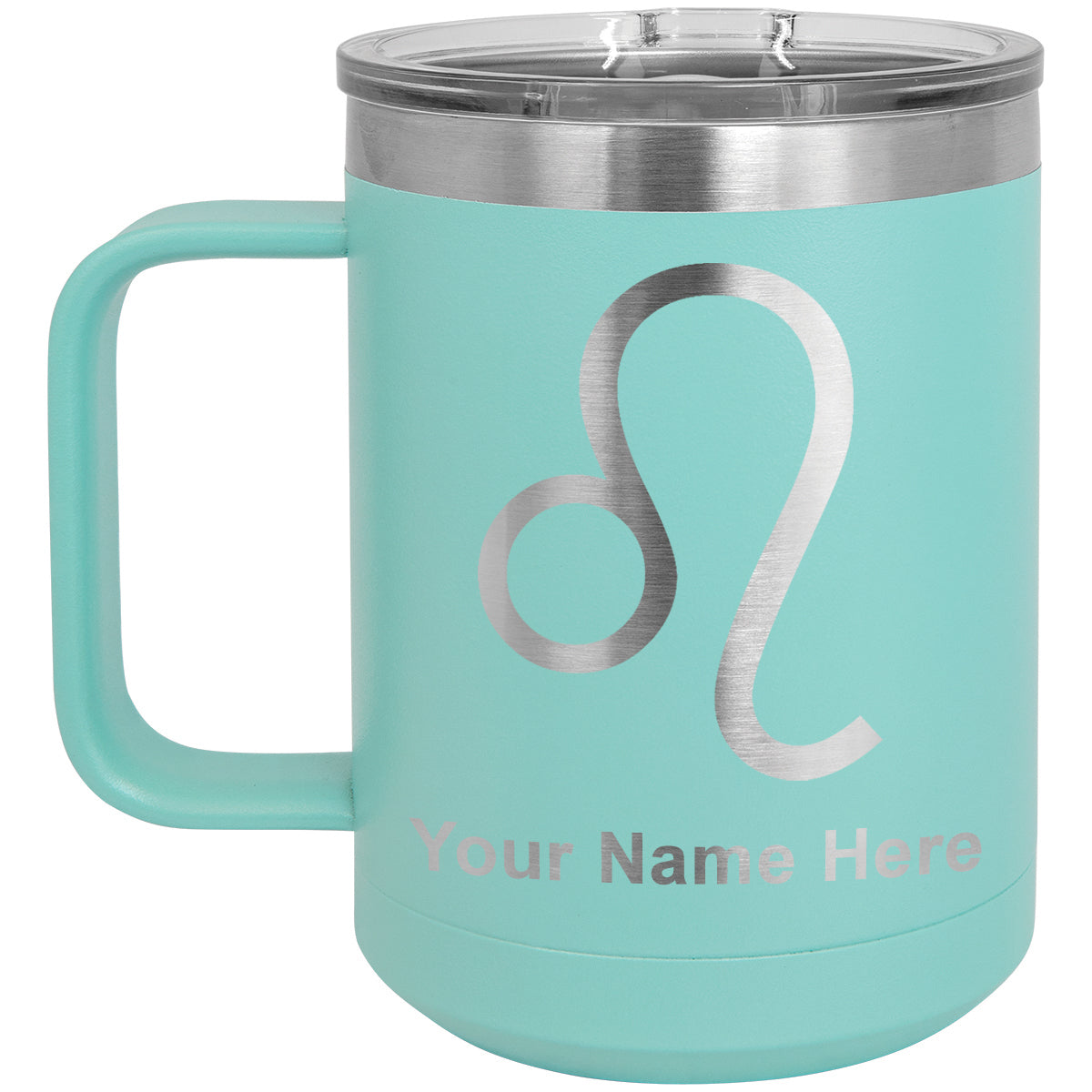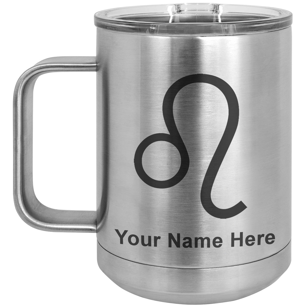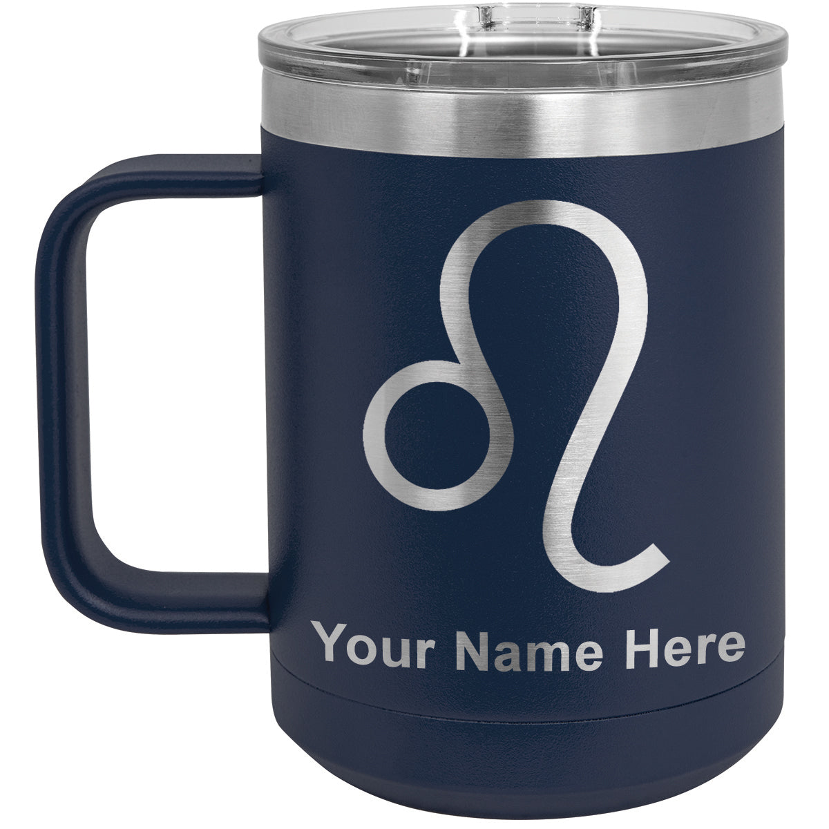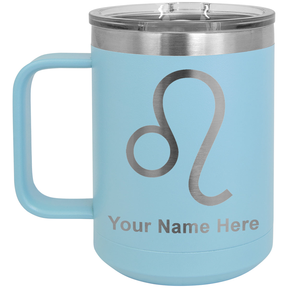 15oz Vacuum Insulated Coffee Mug, Zodiac Sign Leo, Personalized Engraving Included