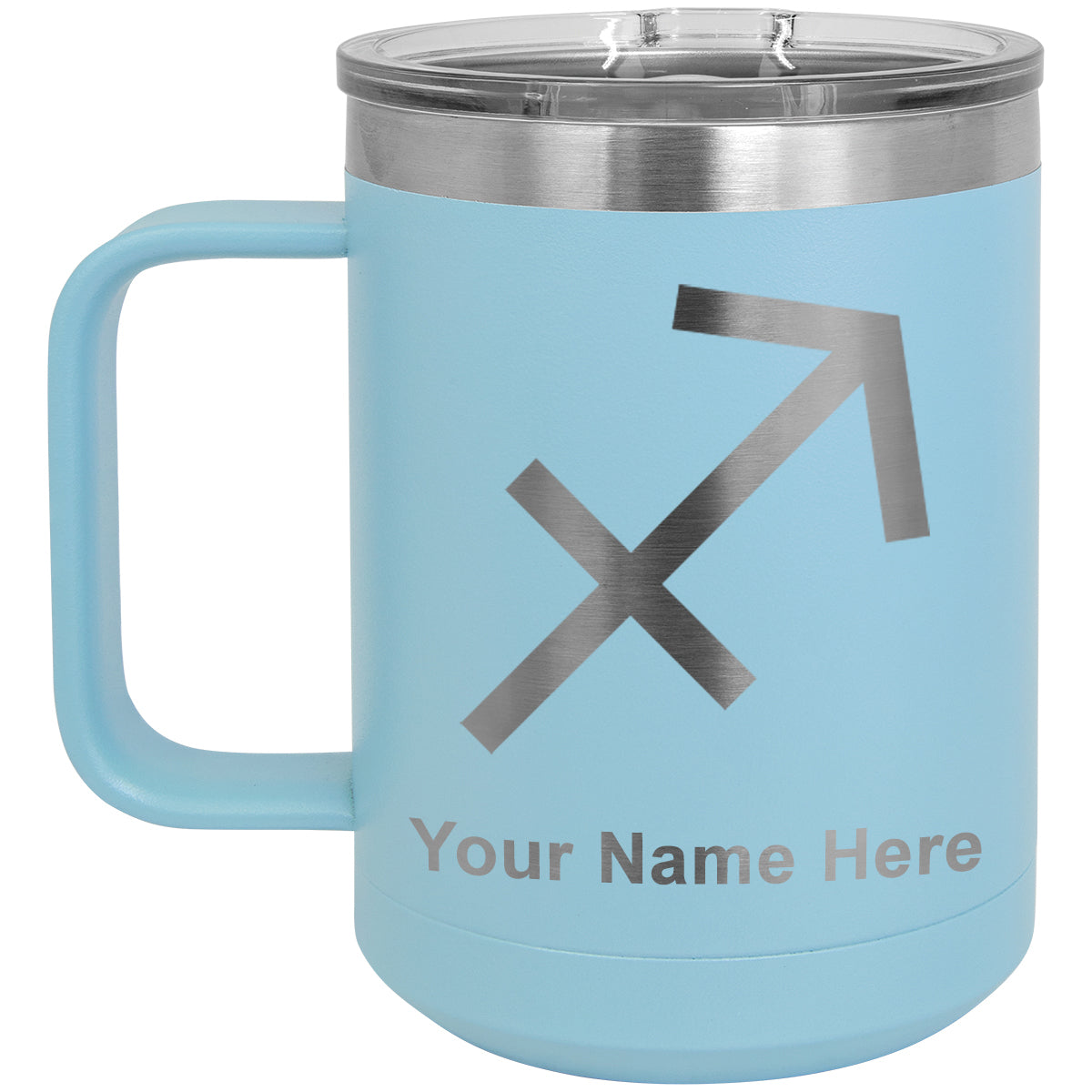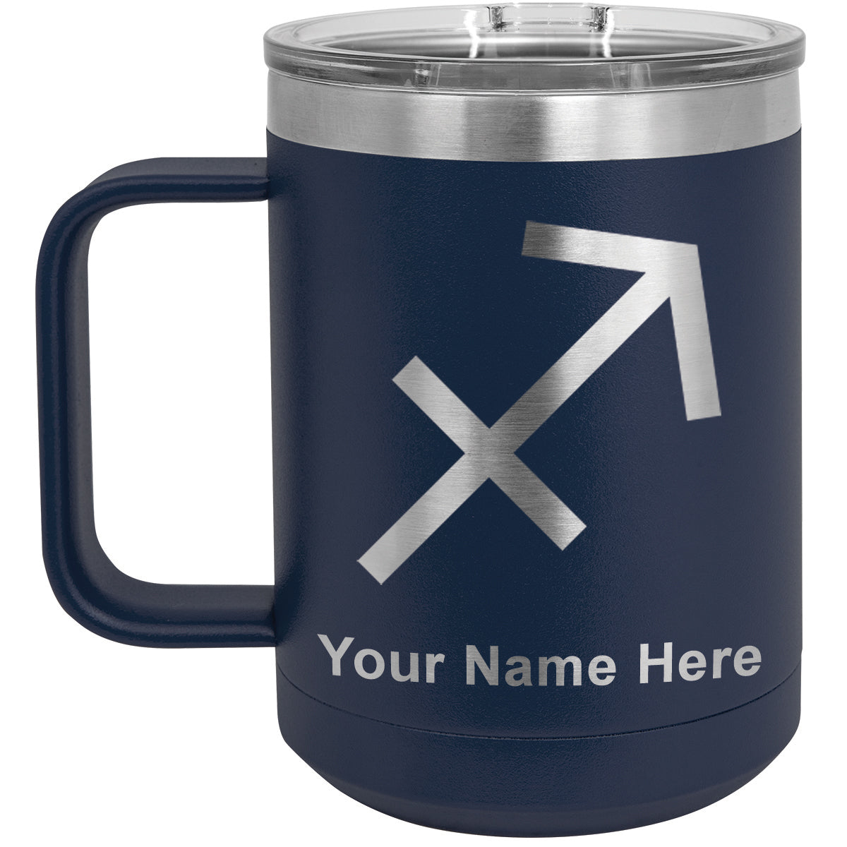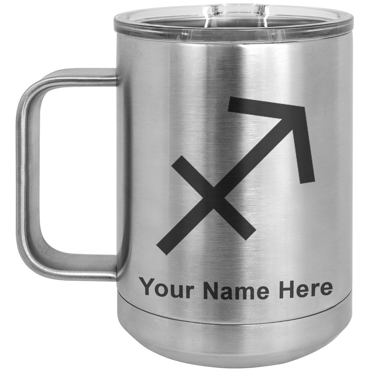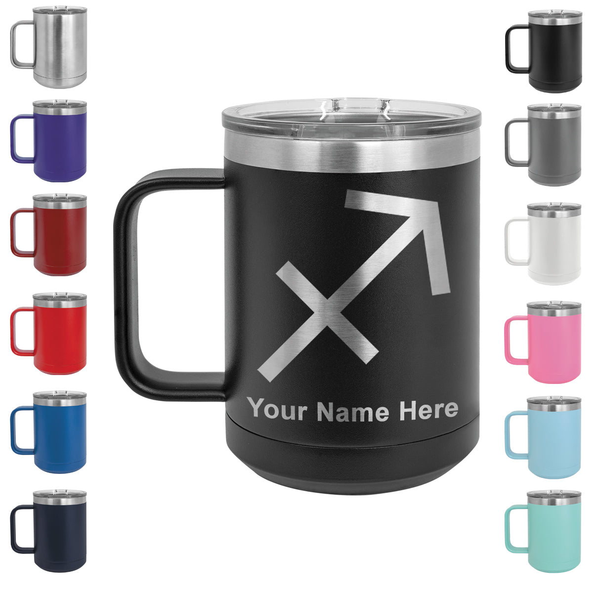 15oz Vacuum Insulated Coffee Mug, Zodiac Sign Sagittarius, Personalized Engraving Included