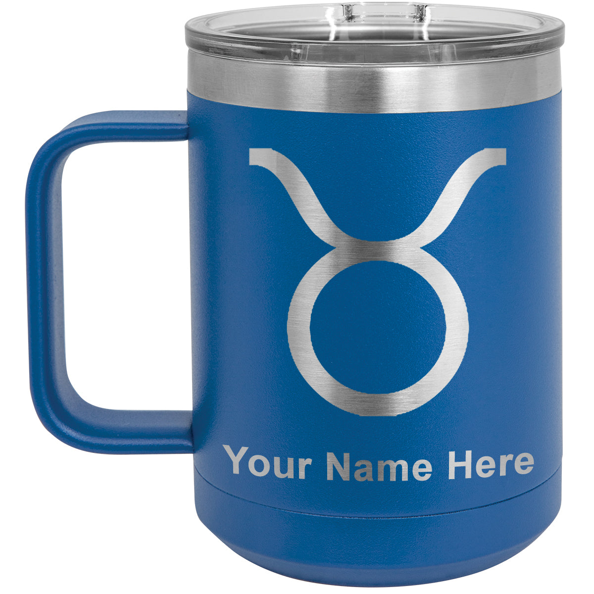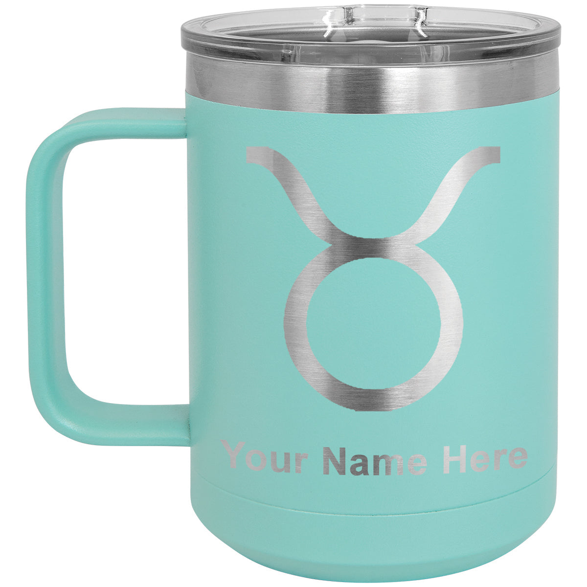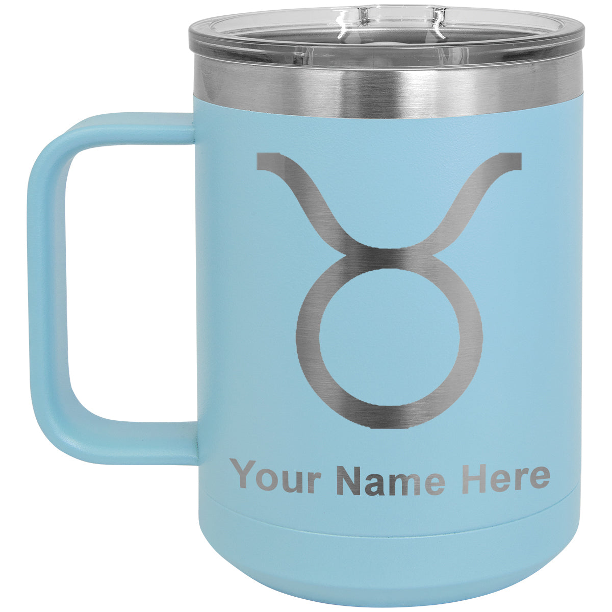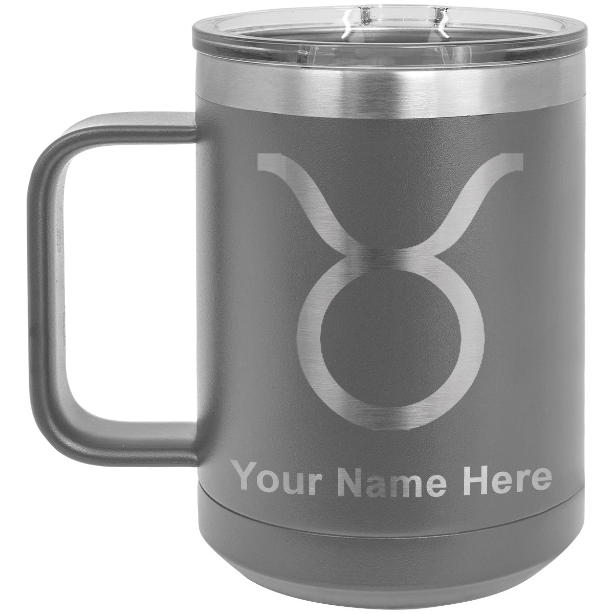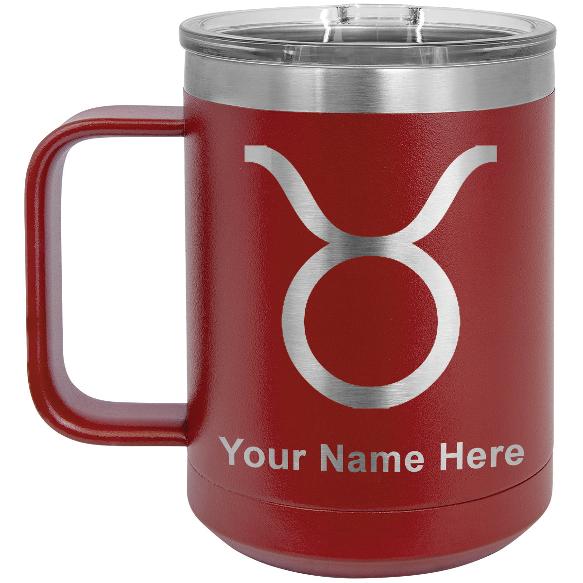 15oz Vacuum Insulated Coffee Mug, Zodiac Sign Taurus, Personalized Engraving Included
