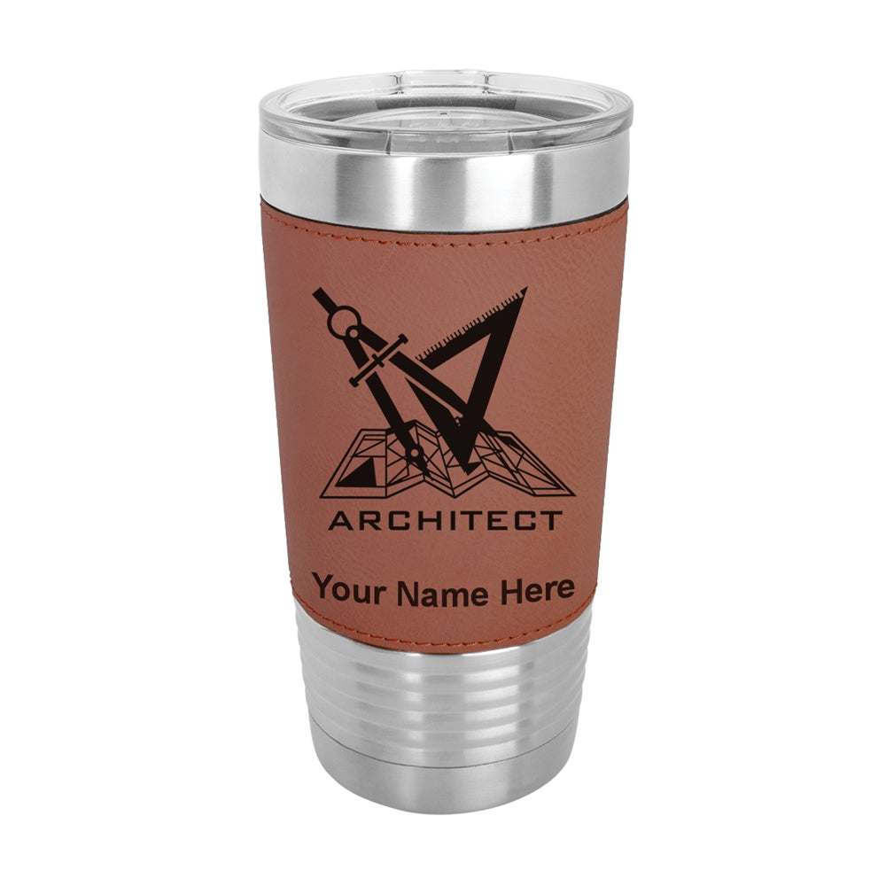 20oz Faux Leather Tumbler Mug, Architect Symbol, Personalized Engraving Included