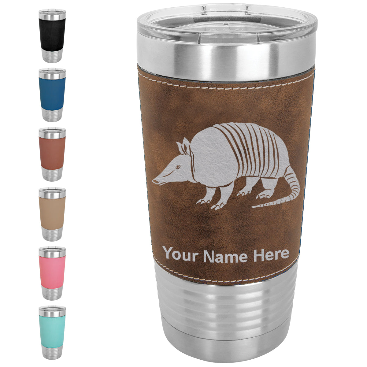 20oz Faux Leather Tumbler Mug, Armadillo, Personalized Engraving Included