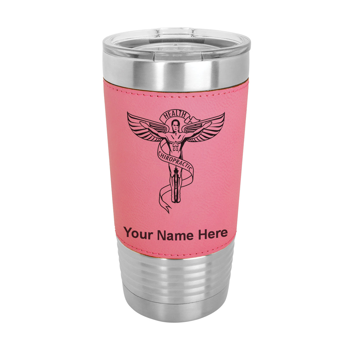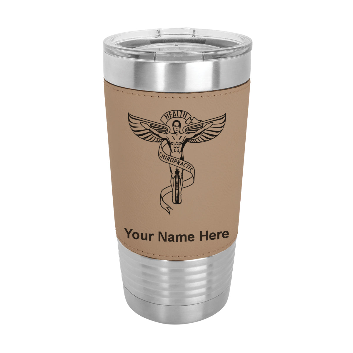 20oz Faux Leather Tumbler Mug, Chiropractic Symbol, Personalized Engraving Included