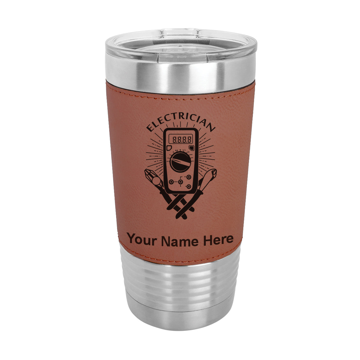 20oz Faux Leather Tumbler Mug, Electrician, Personalized Engraving Included