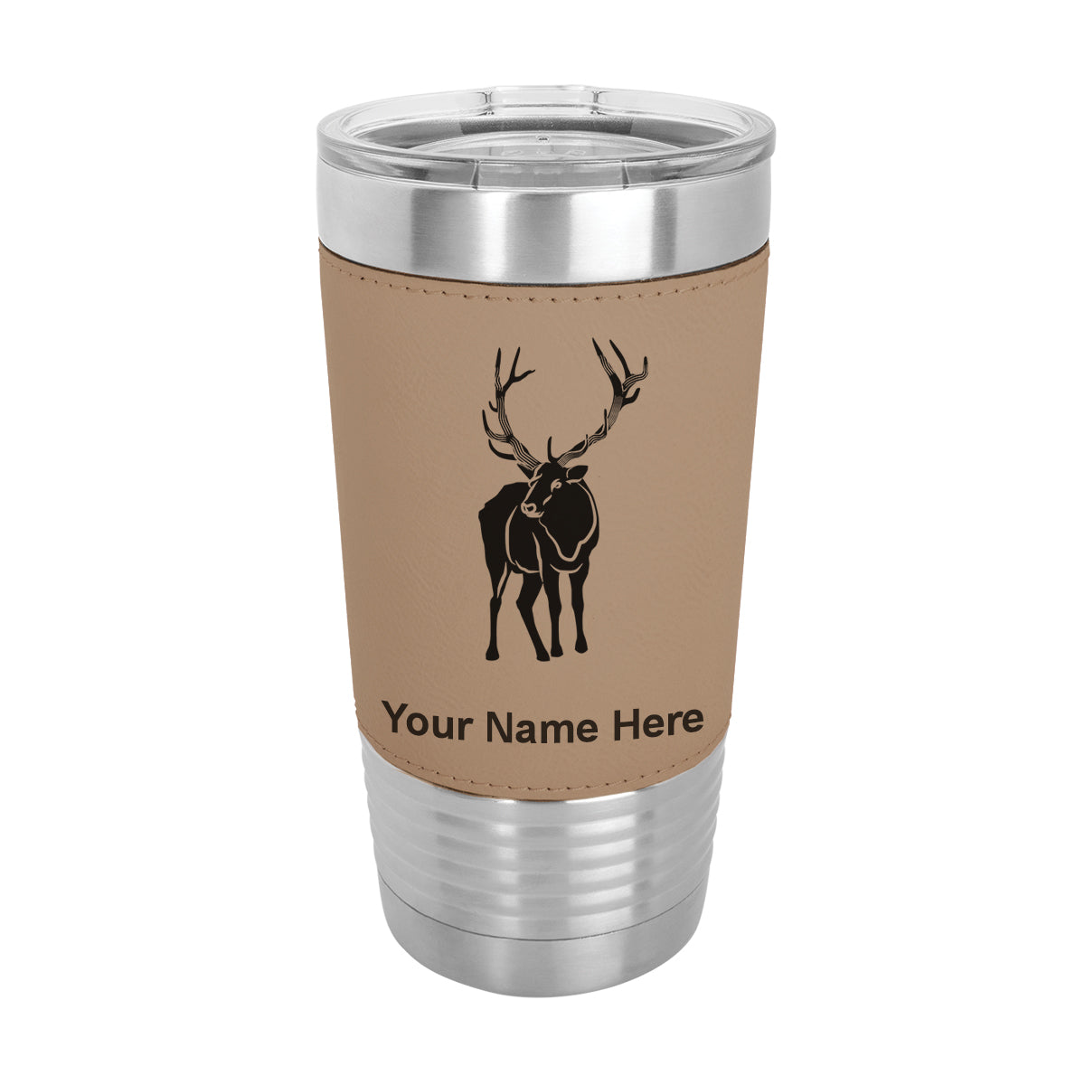 20oz Faux Leather Tumbler Mug, Elk, Personalized Engraving Included