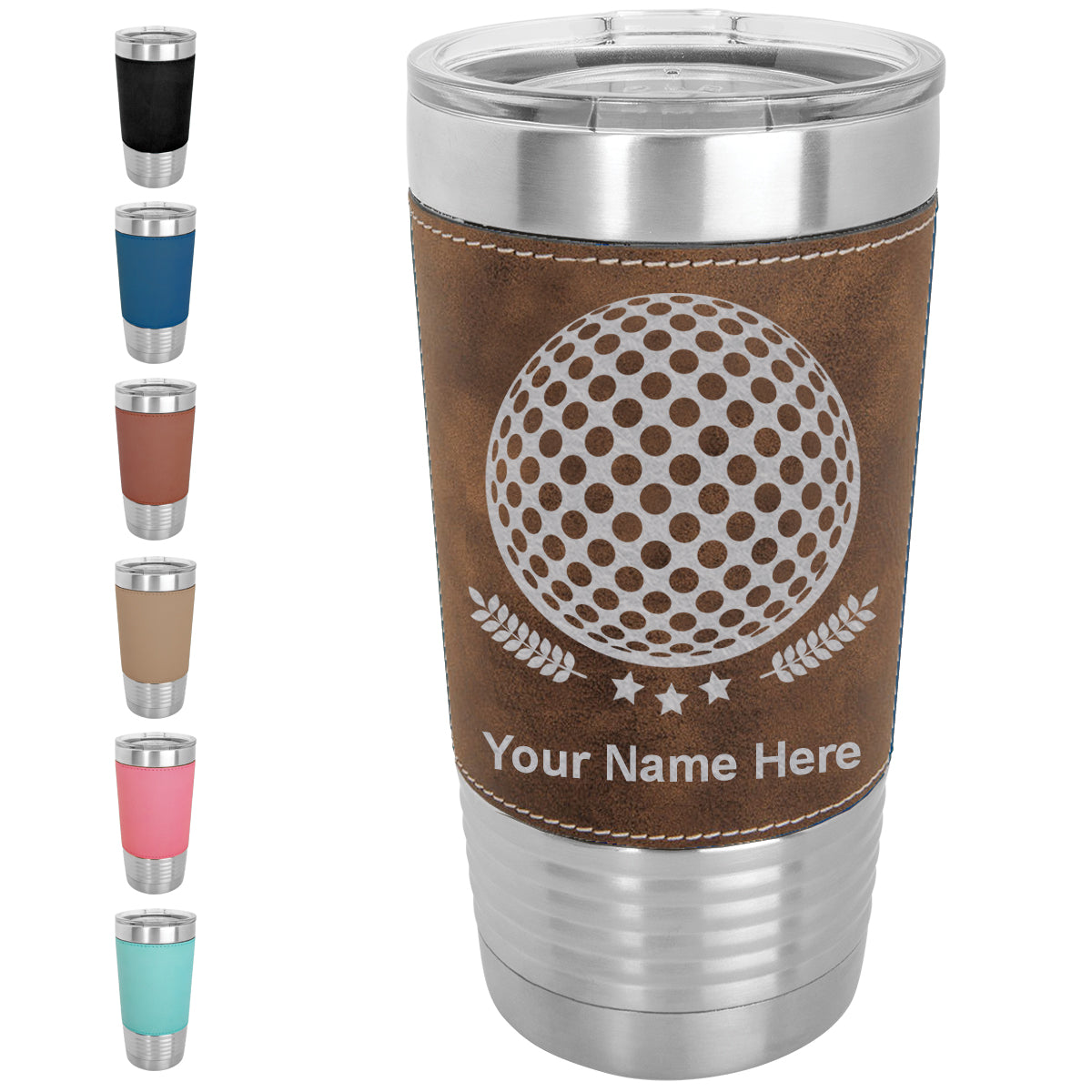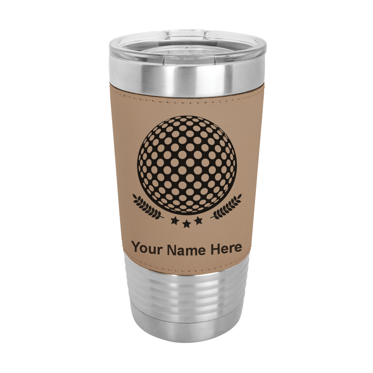 20oz Faux Leather Tumbler Mug, Golf Ball, Personalized Engraving Included