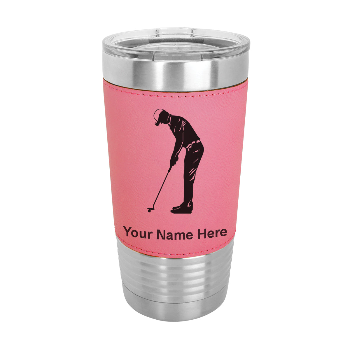 20oz Faux Leather Tumbler Mug, Golfer Putting, Personalized Engraving Included