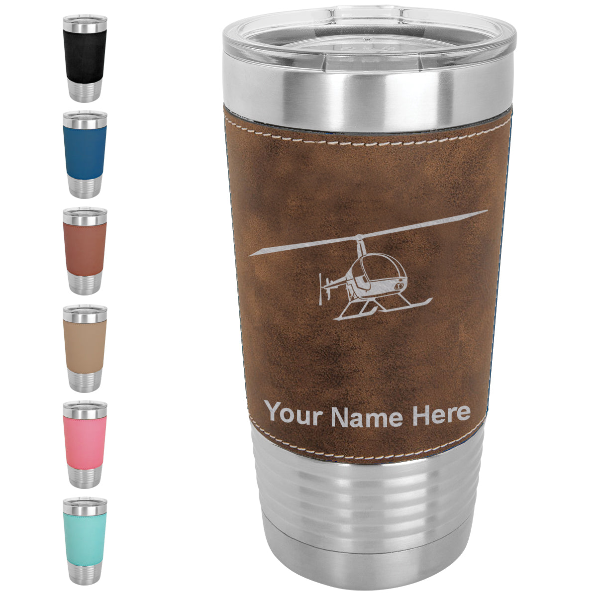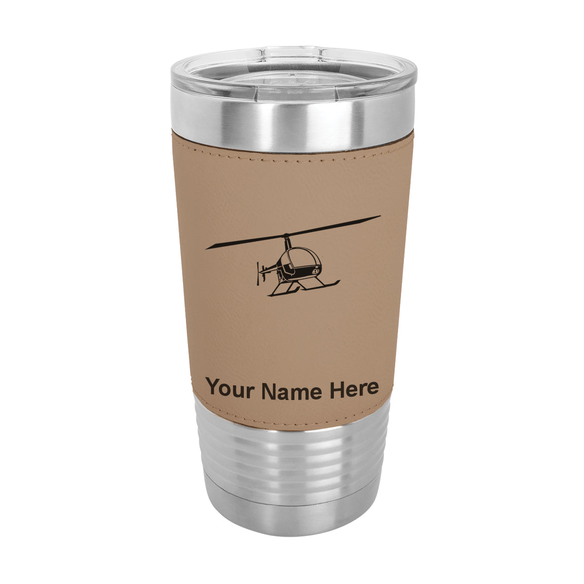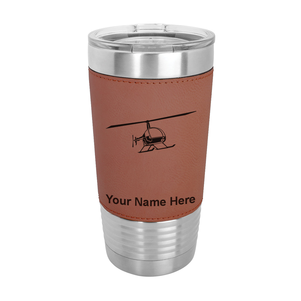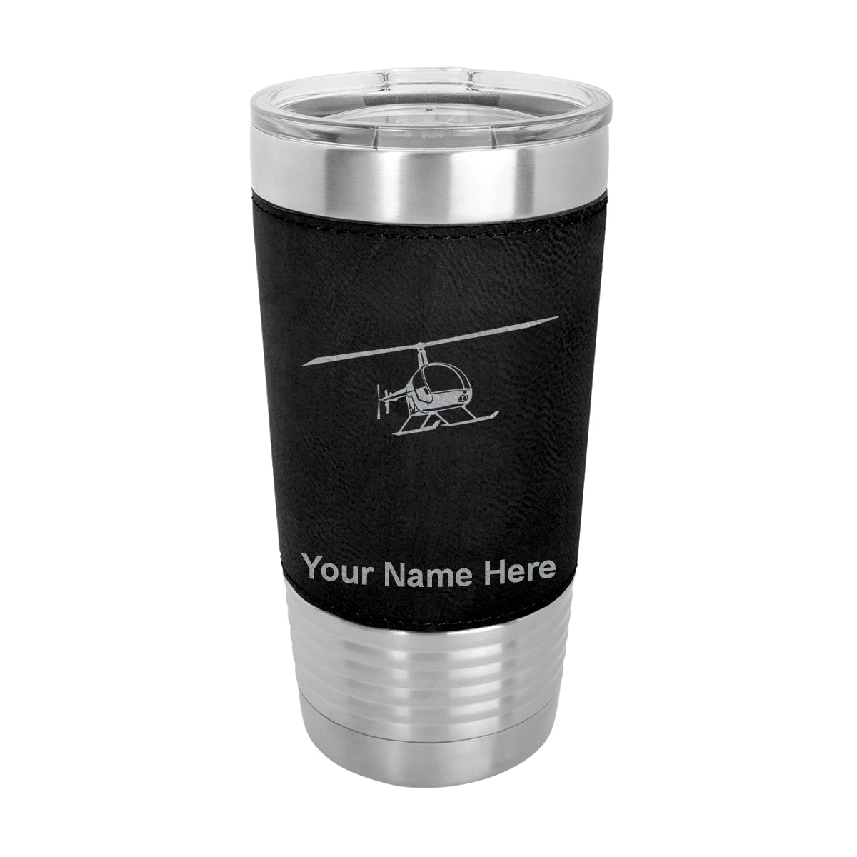 20oz Faux Leather Tumbler Mug, Helicopter 2, Personalized Engraving Included