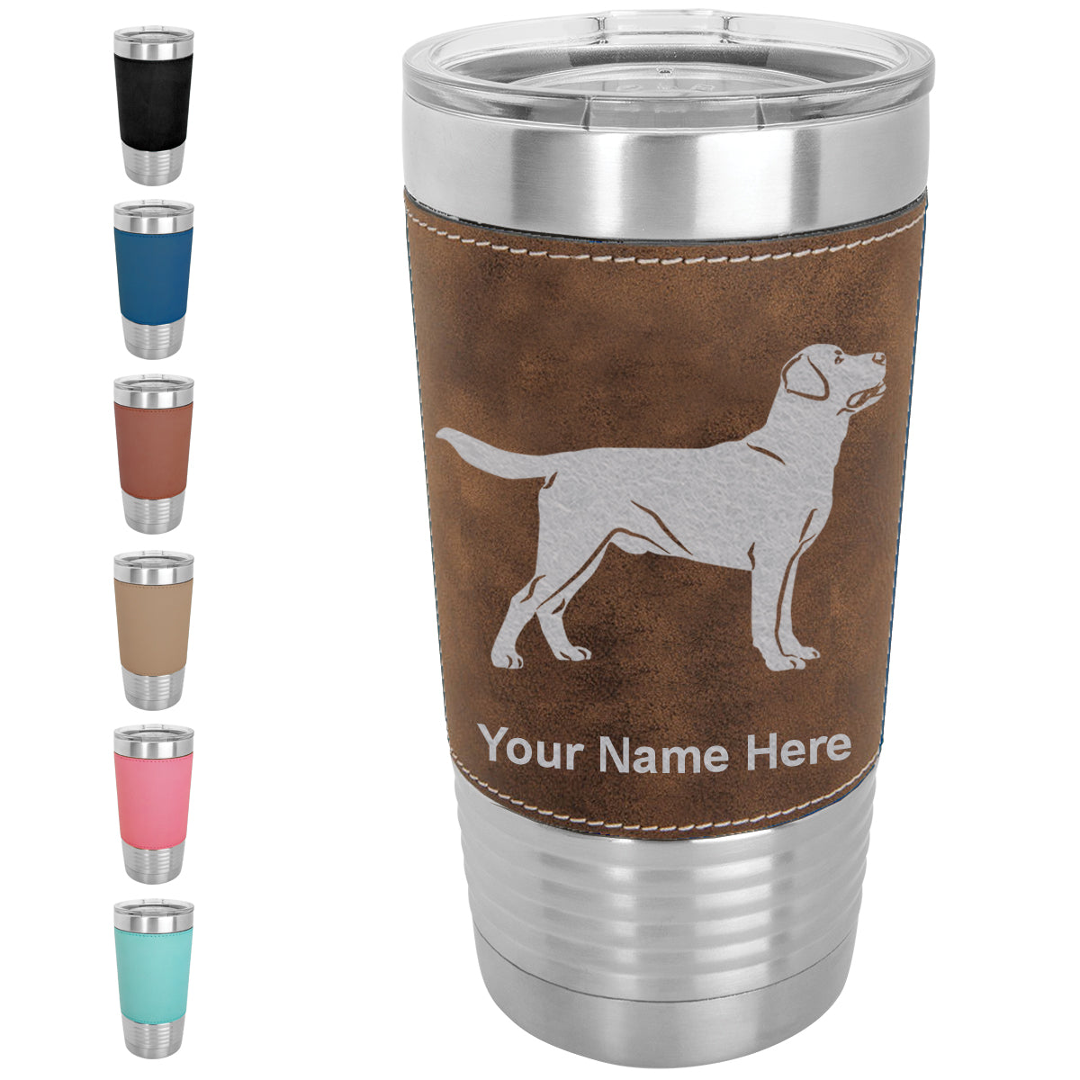 20oz Faux Leather Tumbler Mug, Labrador Retriever Dog, Personalized Engraving Included