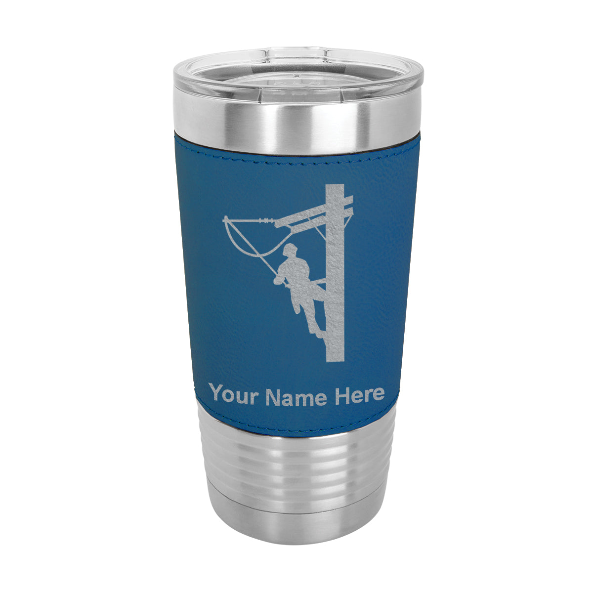 20oz Faux Leather Tumbler Mug, Lineman, Personalized Engraving Included