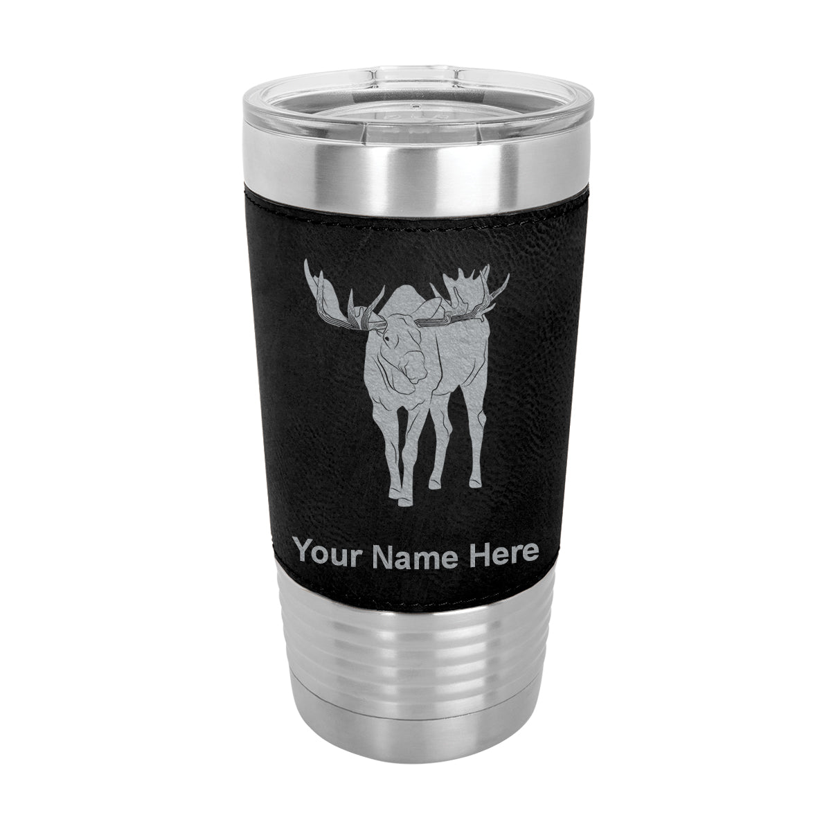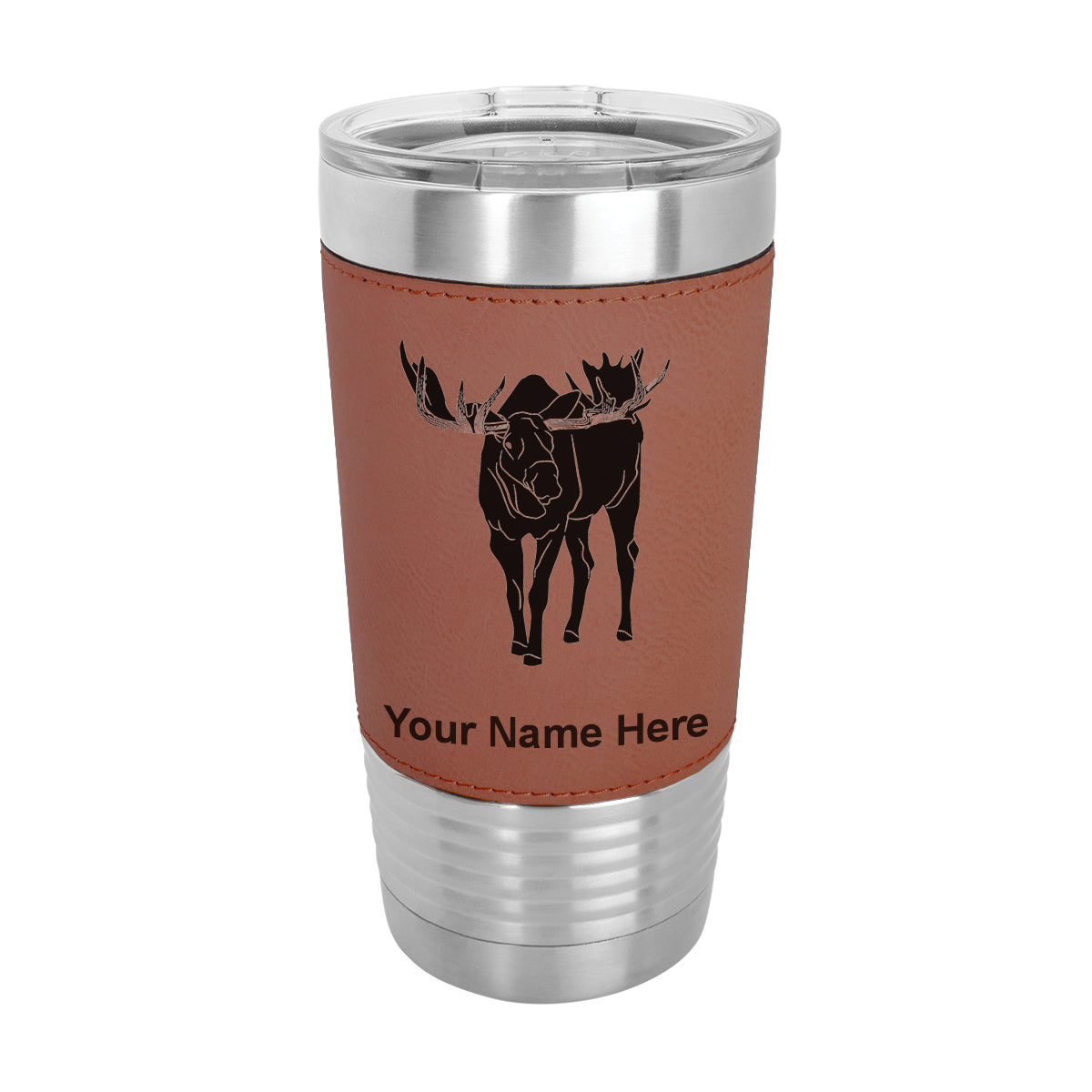 20oz Faux Leather Tumbler Mug, Moose, Personalized Engraving Included