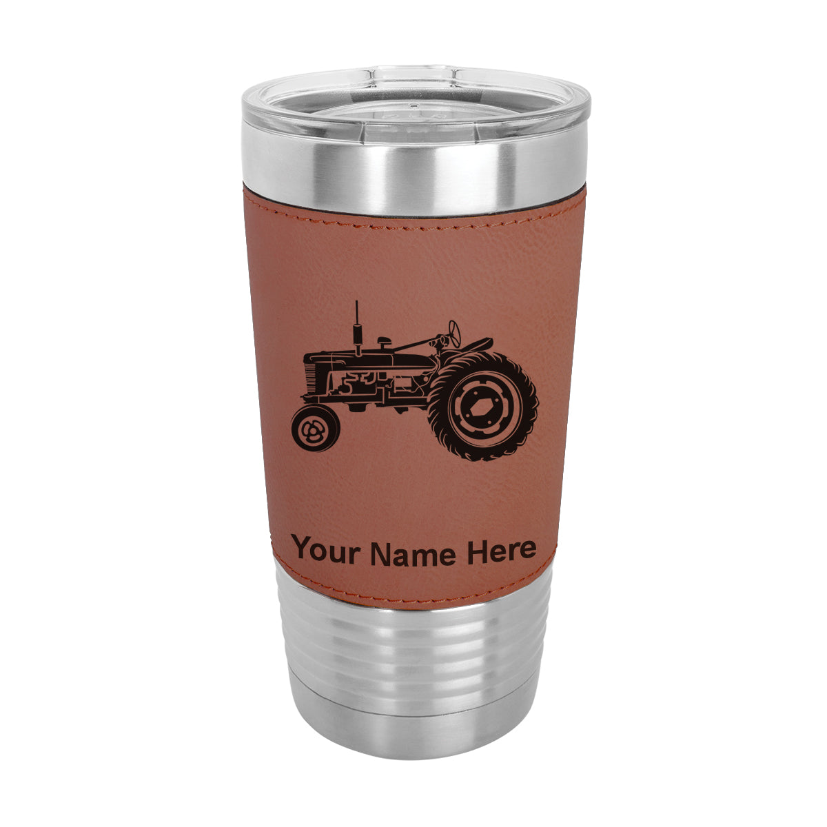 20oz Faux Leather Tumbler Mug, Old Farm Tractor, Personalized Engraving Included