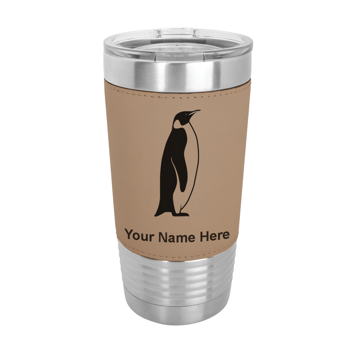 20oz Faux Leather Tumbler Mug, Penguin, Personalized Engraving Included