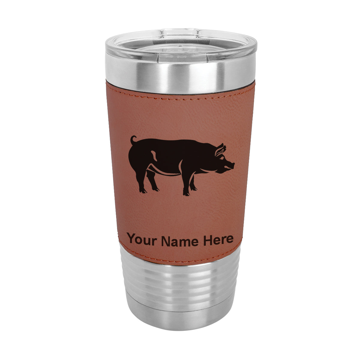 20oz Faux Leather Tumbler Mug, Pig, Personalized Engraving Included