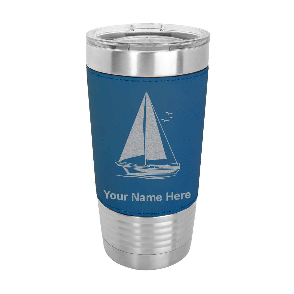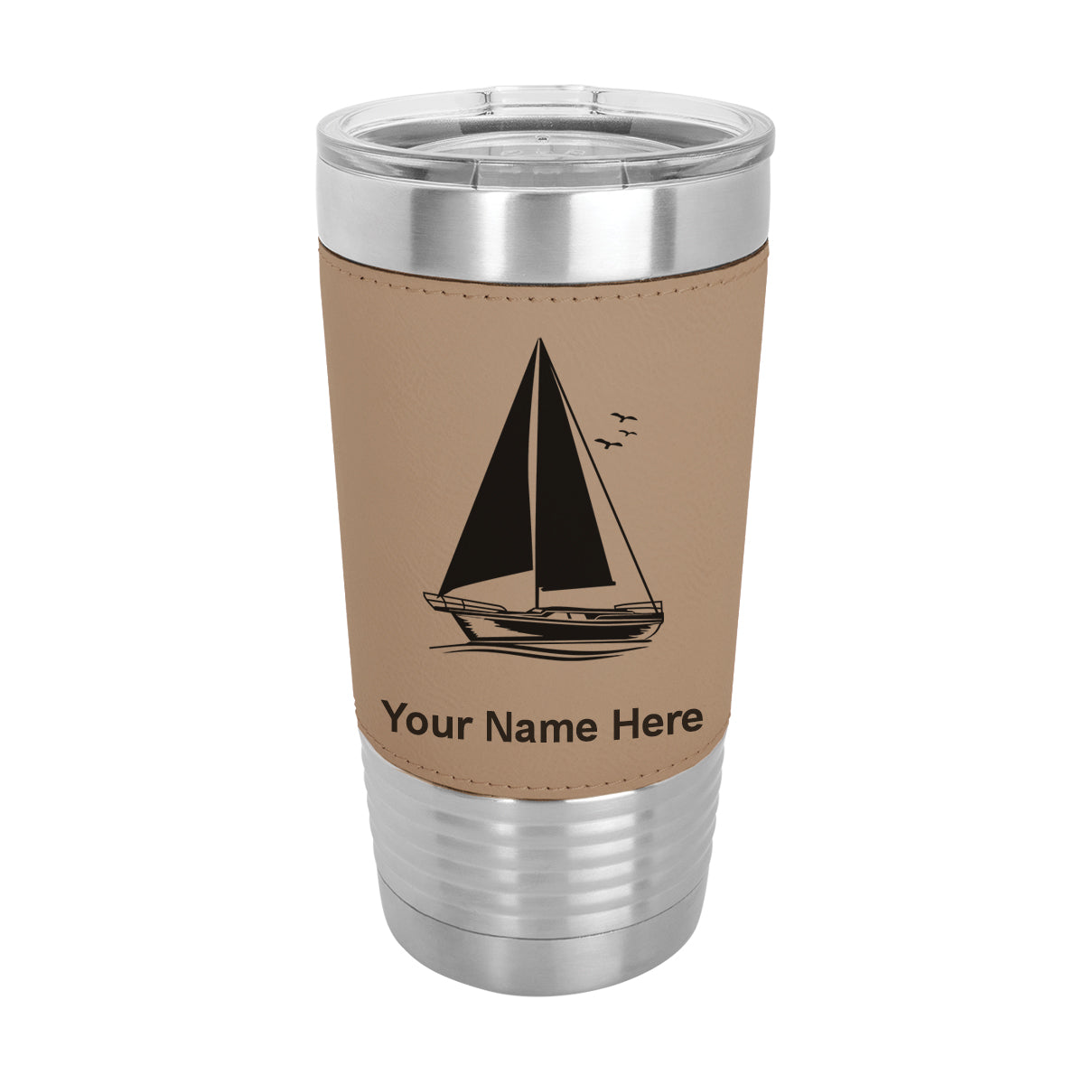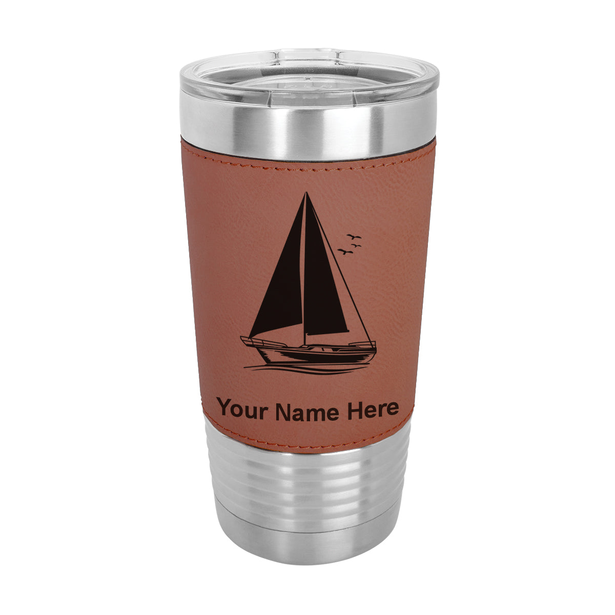 20oz Faux Leather Tumbler Mug, Sailboat, Personalized Engraving Included