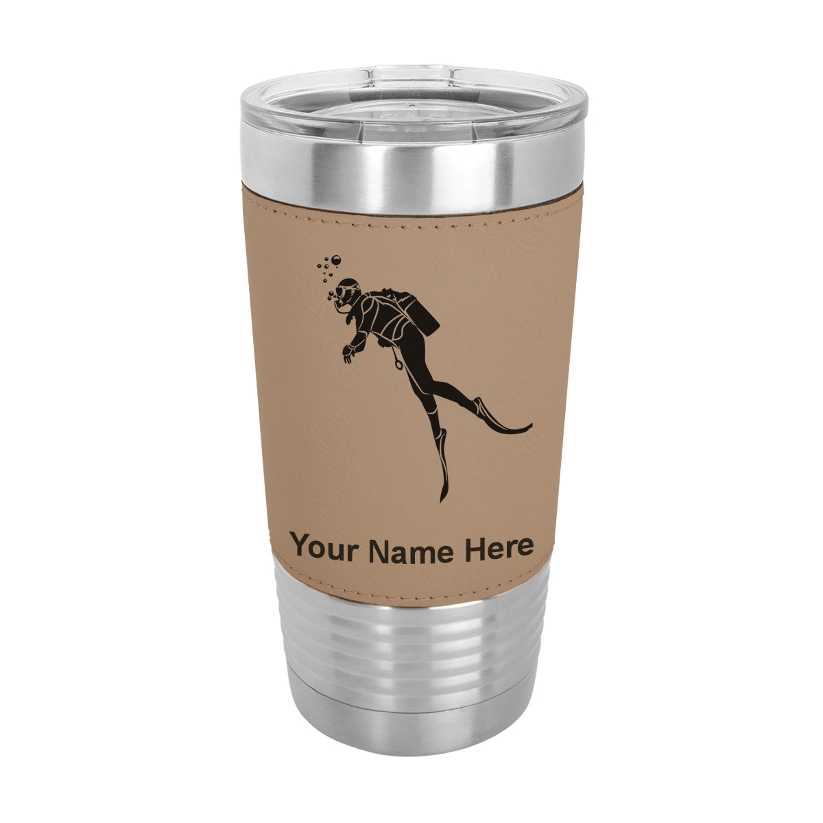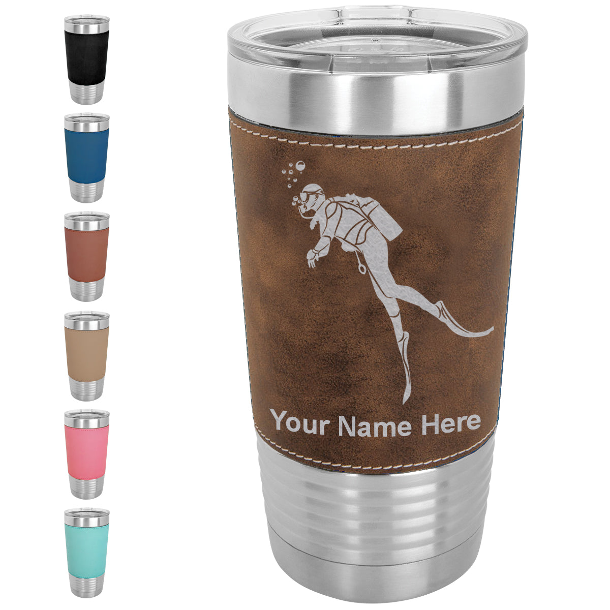 20oz Faux Leather Tumbler Mug, Scuba Diver, Personalized Engraving Included