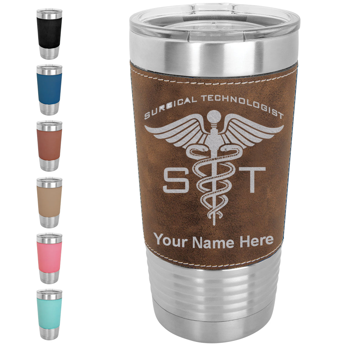 20oz Faux Leather Tumbler Mug, ST Surgical Technologist, Personalized Engraving Included